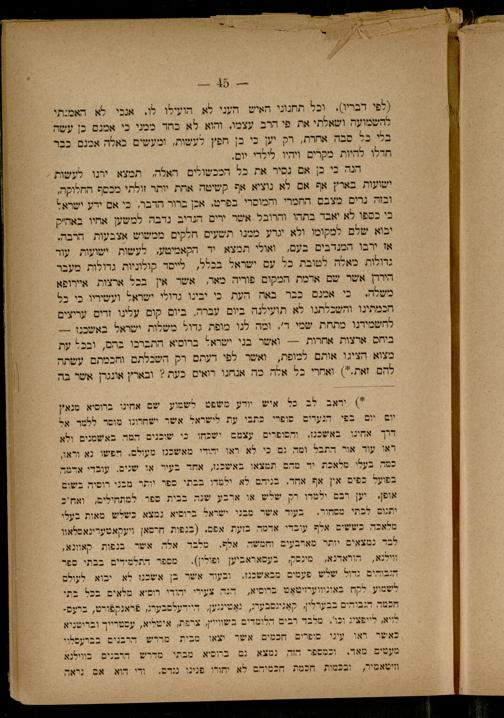 הנה כי כן אם נסיר את כל המכשולים האלה, תמצא ירנו לעשות ישועות בארץ אף אם לא נוציא אף קשיטה אחת יותר זולתי מכסף החלוקה, ובזה נרים מצבם החמרי והמוסרי בפרט. אכן ברור הדבר, כי אם ידע ישראף בי כספו לא יאבד בתהו והרובל אשר ירים הנדיב נדבה. למשען אחיו באה'ק יבוא שלם למקומו ולא יגרע ממנו תשעים חלקים. ממשוש אצבעות| הרבה, אז ירבו המנדבים בעם, ואולי תמצא יד הקאמיטע, לעשות ישועות עור גרולות מאלה לטובת כל עם ישראל בכלל, לייסר קולוניות גדולות. מעבר היררן אשר שם אדמת המקום פוריה. כאר,| אשר אין בכל ארצות. איירופא משלה. כי אמנם כבר באה העת כי יבינו גדול. ישראל ועשיריו. בי כל הכמתינו. והשכלתגו לא תועילנה ביום. עברה. ביום קום עלינו זרים. עריצים לחשמידנו מתחת שמי ד'. ומה לנו מופת גדול. משלות ישראל באשבנז-ביחם ארצות אחרות-- ואשר בני ישראל ברוסיא התברבו בהם, ובכל עת מצוא הציגו אותם לנופת, ואשר לפי רעתם רק השבלתם וחכמתם עשתה להם זאת.") ואחרי כל אלה כה אנחנו רואים. כעת? ובארץ אונגרן אשר בה