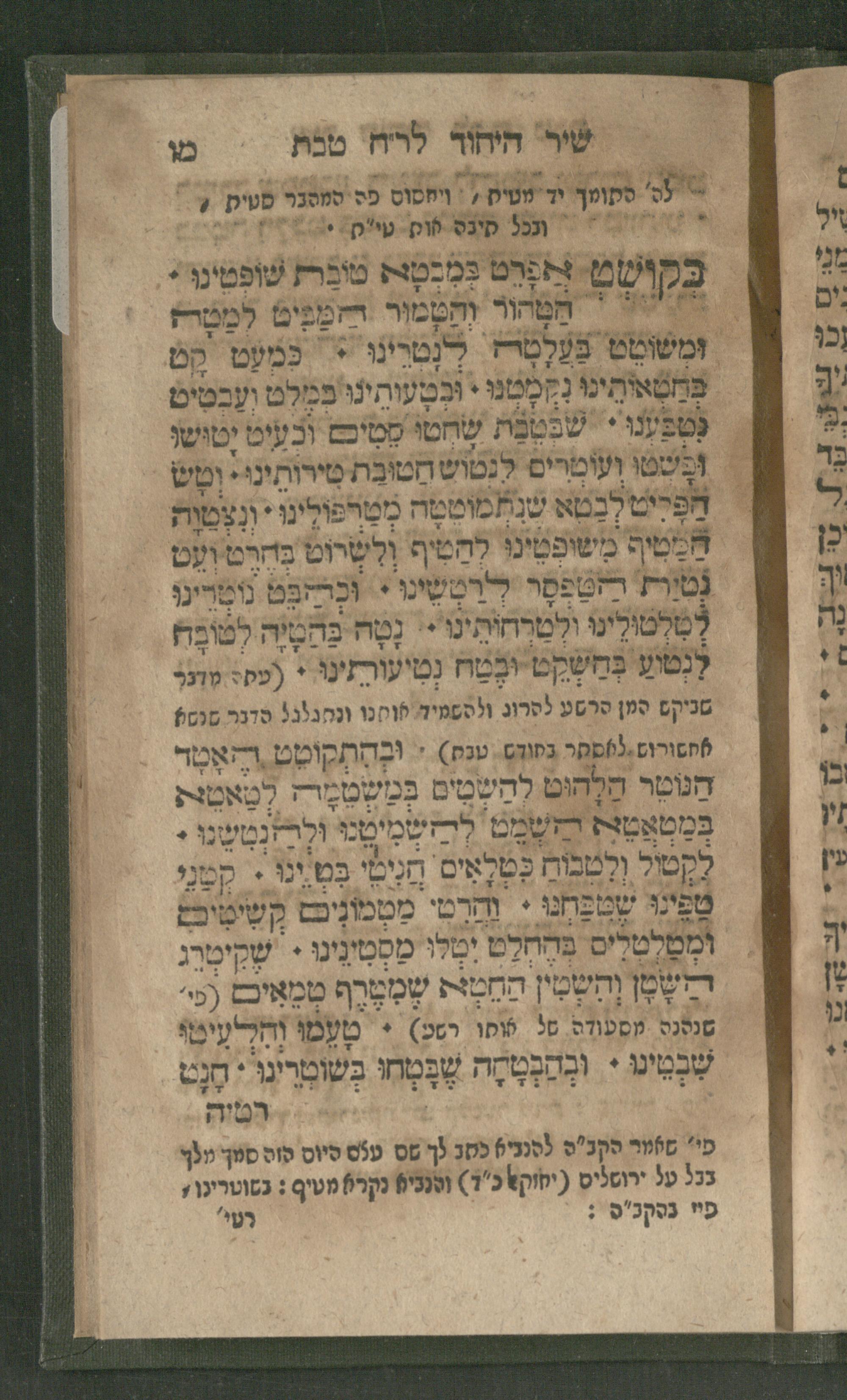 שיר היחוד לריח טבת לה' התומך יד מטית, ויחסוס פי סמקבר סטית.