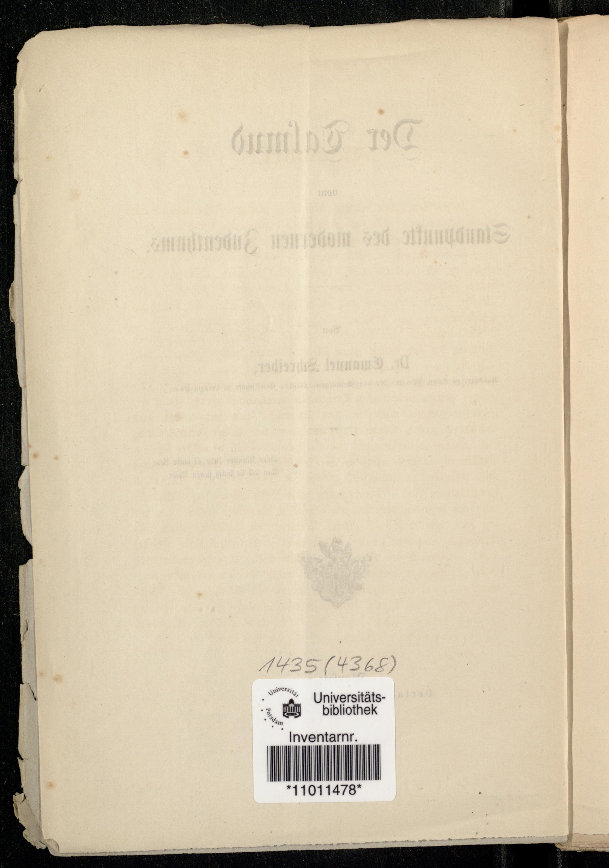 Der Talmud vom Standpunkte des modernen Judenthums / von Emanuel Schreiber