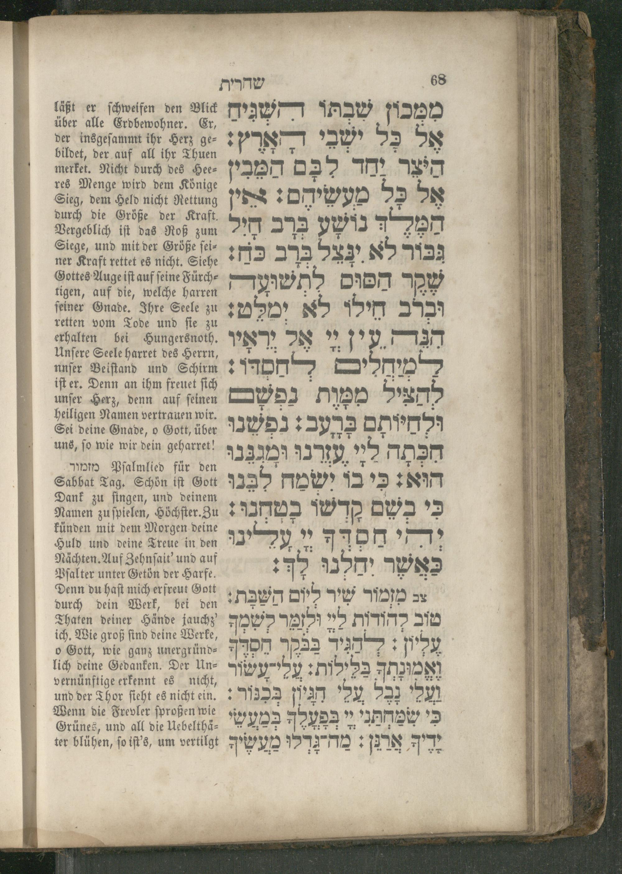 Sabbat Tag. Schön iſt Gott הוא: 2 בו ישמח לכנו Dank zu fingen, und deinem