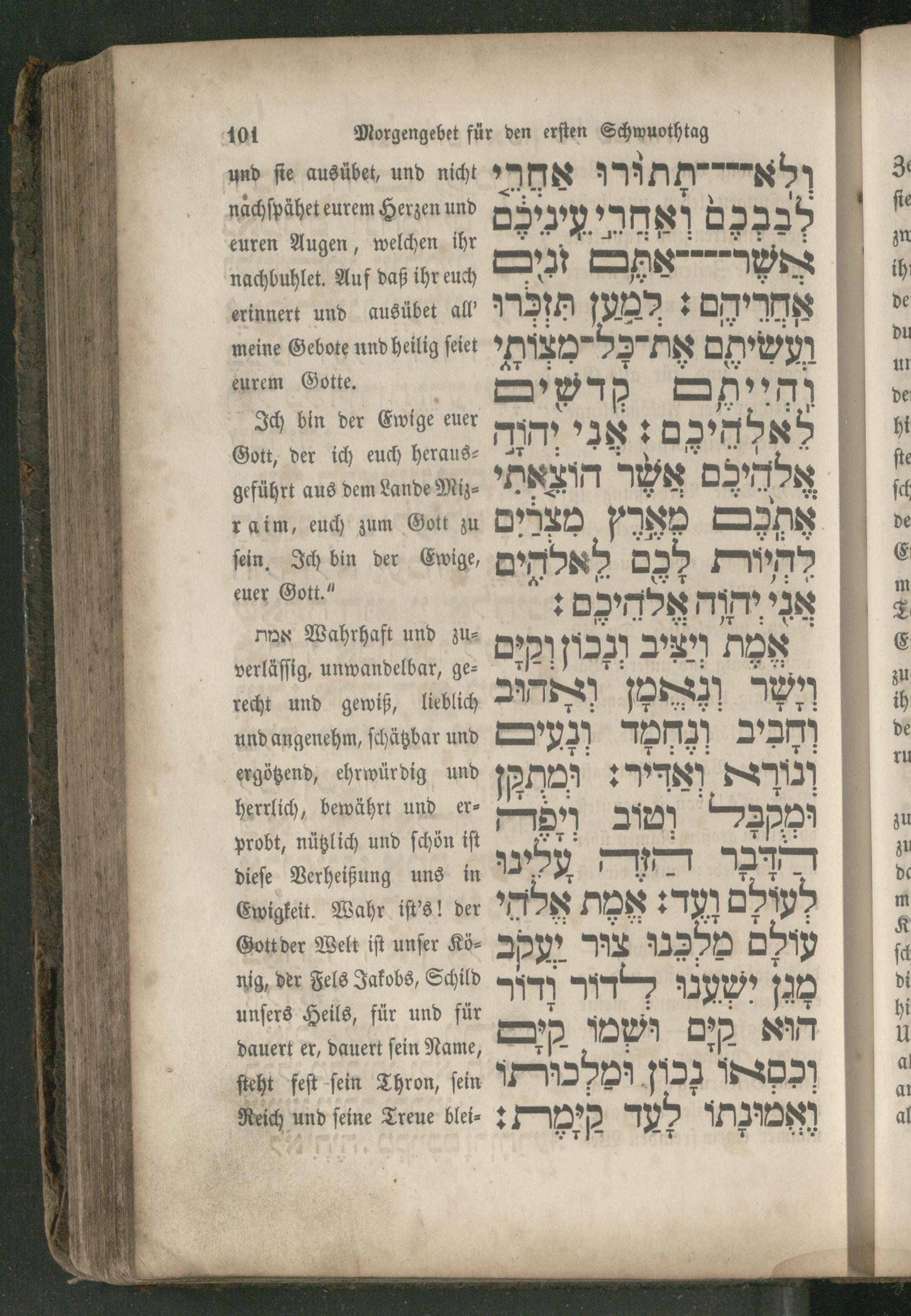 meine Gebote und heilig feiet ועשית ם אֶתחב ל"מצותי . א il ö ( bin der Ewige euer Gott, der ich euch heraus⸗ mim uz:. לְאלְהִיכֶם geführt aus dem Lande Miz⸗* הוצא Jutz Sers r aim, euch zum Gott zu מאָרֶץ מצרים* fein, Ich bin der Ewige, להיורת לְכֶם לאלחים ,,.. אמת Wahrhaft und zuverläſſig, unwandelbar, ge= ויציב 1529 ו וְקיִם DON recht und gewiß, lieblich 6. hn und angenehm, ſchätzbar und ונעיבם DM) 293m) waäend, crwiür din un fre EAN) STE herfich, bewährt und 3. Pd 20) oa probt, nützlich und ſchön iſt 65 dieſe Verheißung uns in בו Y mm ההדבר אע ah ₪ זא ON לְעוּלֶם וְעָד: את Gott der Welt iſt unfer Kö- צור וקב 33220 Do unſers Heils, für und für 4 ö dauert er, dauert ſein Name, 231 קים ושמי am ₪ ₪ ו gen ln וכסְגתו נכון ומלכורתו Reich und feine Treue blei⸗:. תו לעד.