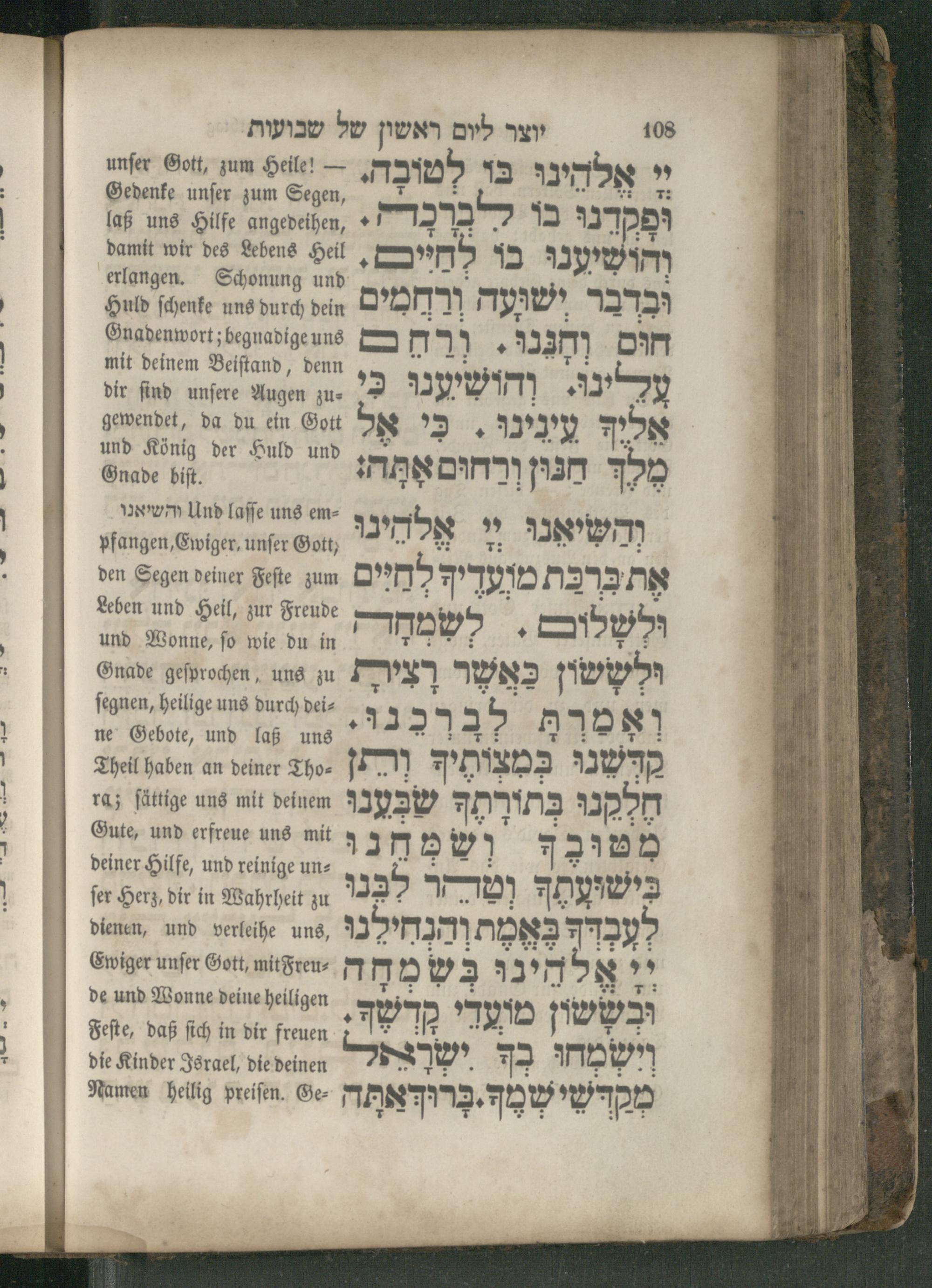 108 יוצר ליים ראשון של שבועות יי אלהינו בי לטובה.— unſer Gott, zum Heile!