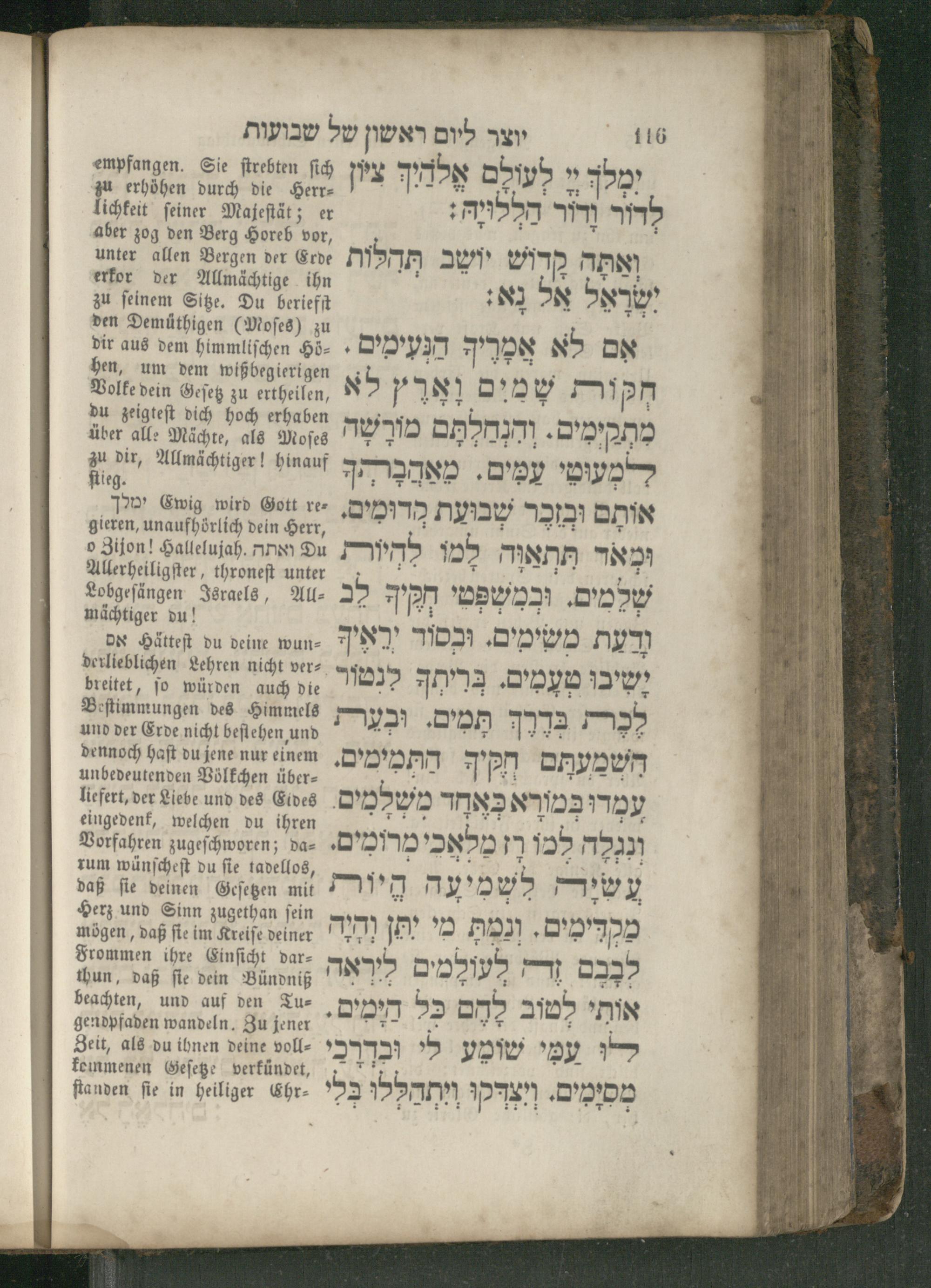 Ewig wird Gott rer ימלך gieren, unaufhörlich dein Herr, Du ואתה o Zijon! Hallelujah. Allerheiligſter, throneſt unter Lobgeſängen Israels, All⸗ mächtiger du!