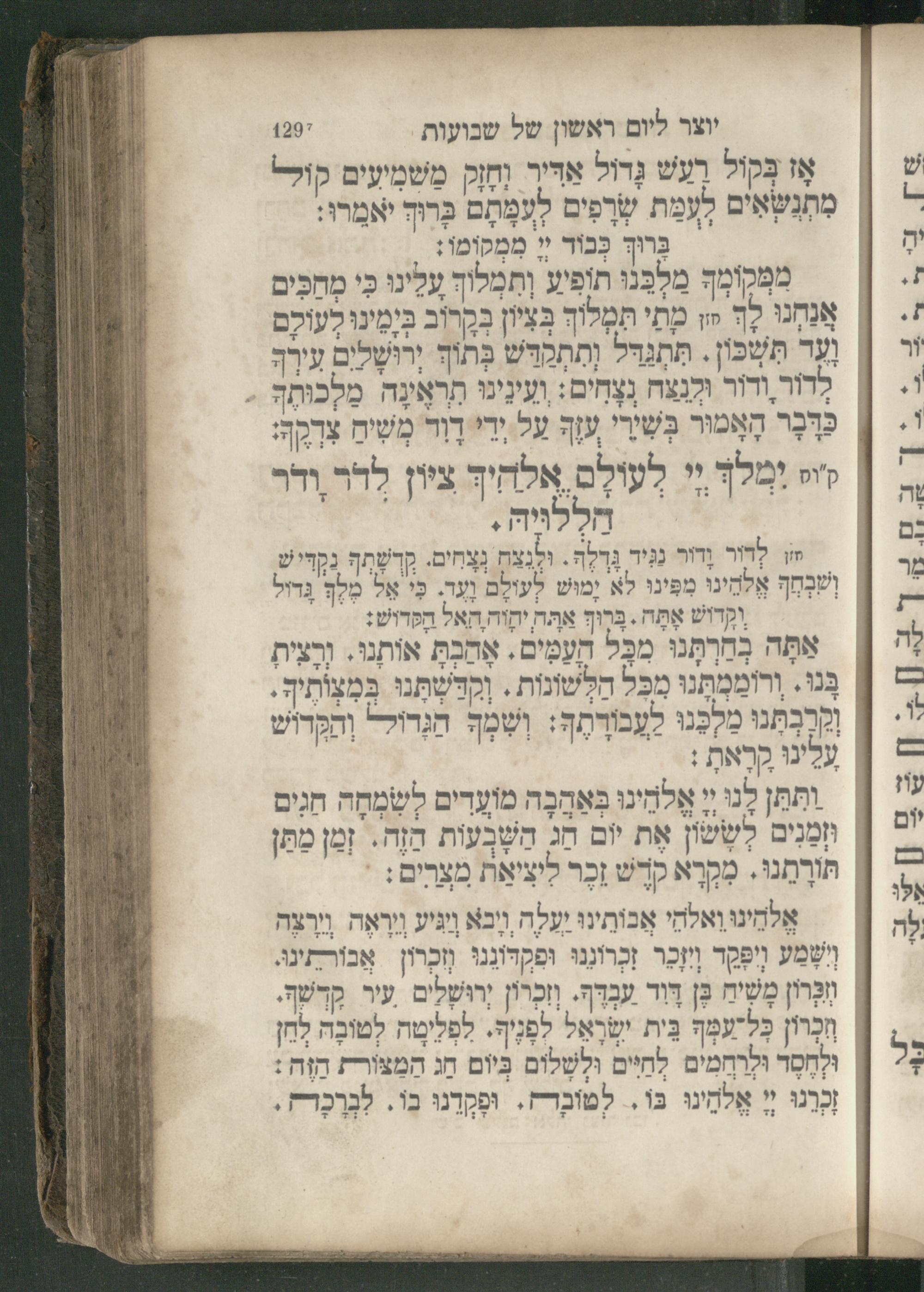 N+3| מל„ER mW ia MP 327 לעבודתף: Pa RA ותקרוש עלינו קְרָאת: JM לנו יי MRS AD מוערים לְשְמְחָה Dan wh DD) אֶת יום הג הַשְבָעות הַזֶה. זמן pe „m מְקְרָא קרש זכר ליציאת מצרים:
