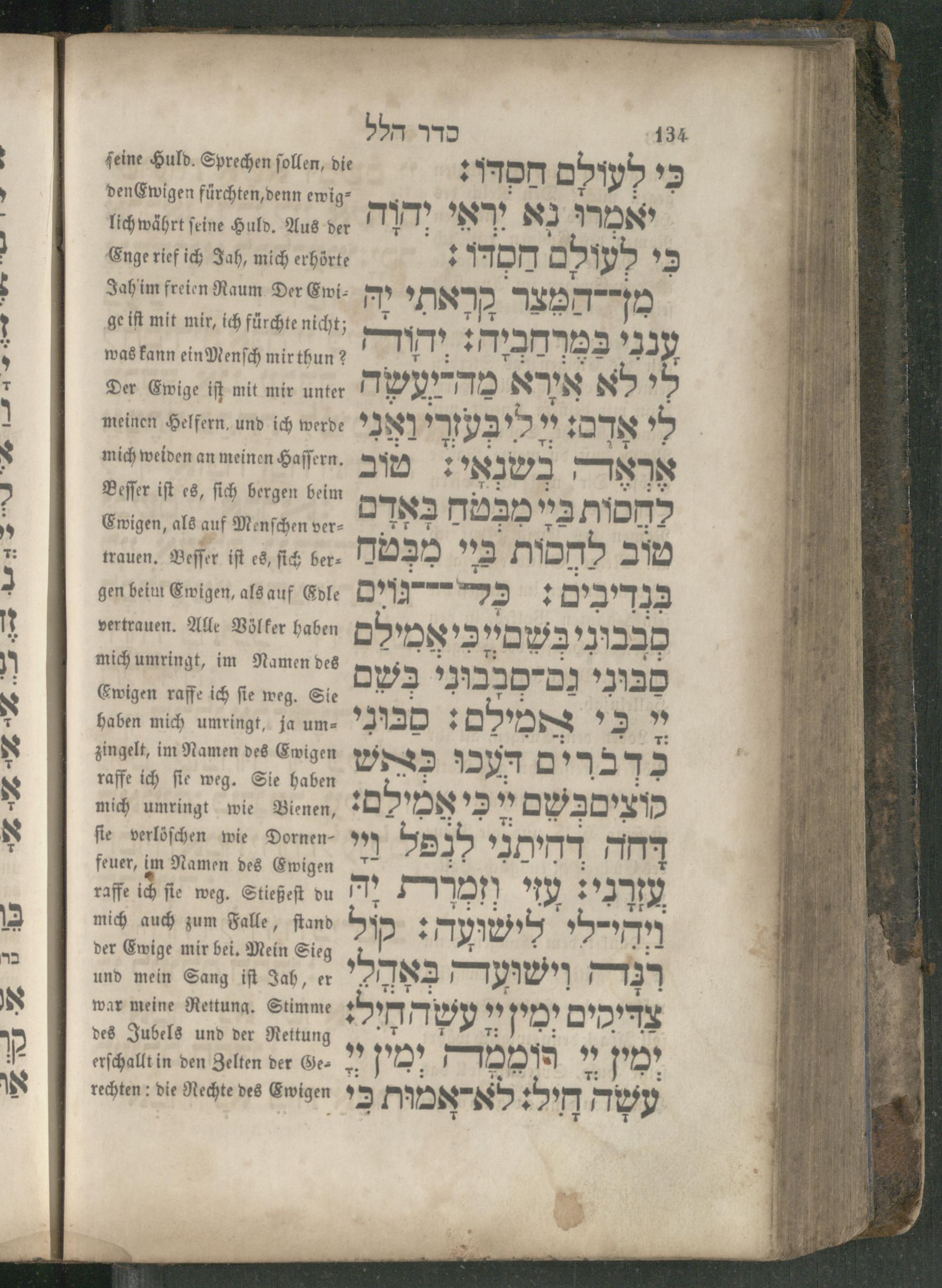 134 סדר הלל כי לְעִילם חסדו:* WE Wan ſollen, die enEwigen fürchten,denn ewig⸗ 55 P יאמרו lich währt ſeine Huld. Aus der MT NY Ra כי Enge rief ich Jah, mich erhörte/ 370m e ענני במרחביה: יהודה nicht; אצי ge iſt mit min ich was kann ein Menſch mir thun? לי לא אירא 72 יעשה Der Ewige iſt mit mir unter לי אֶרֶם: 5* meinen Helfern, und ich werde N) ma NN בשגָאי: 7 29 mich weiden an meinen Haffern,
