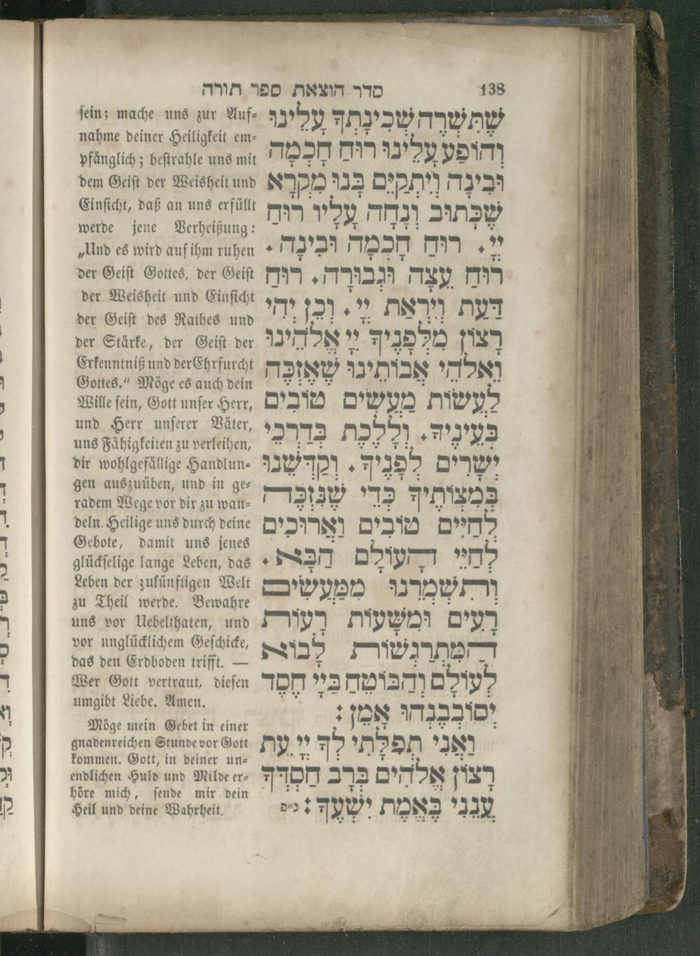 138 סדר הוצאת ספר תורה me deiner Heiligkeit em⸗ a nr והופע עלינו 7M חְכְמָה pfänglich; beſtrahle uns mit