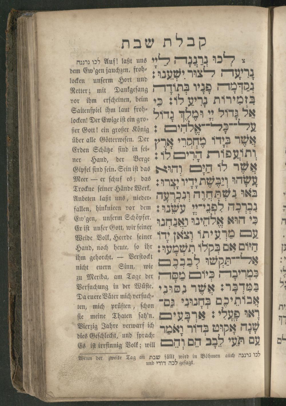 Wenn der zweite Tag an שבת fällt wird in Böhmen auch לכו נרננה und לכה דודי geſagt.
