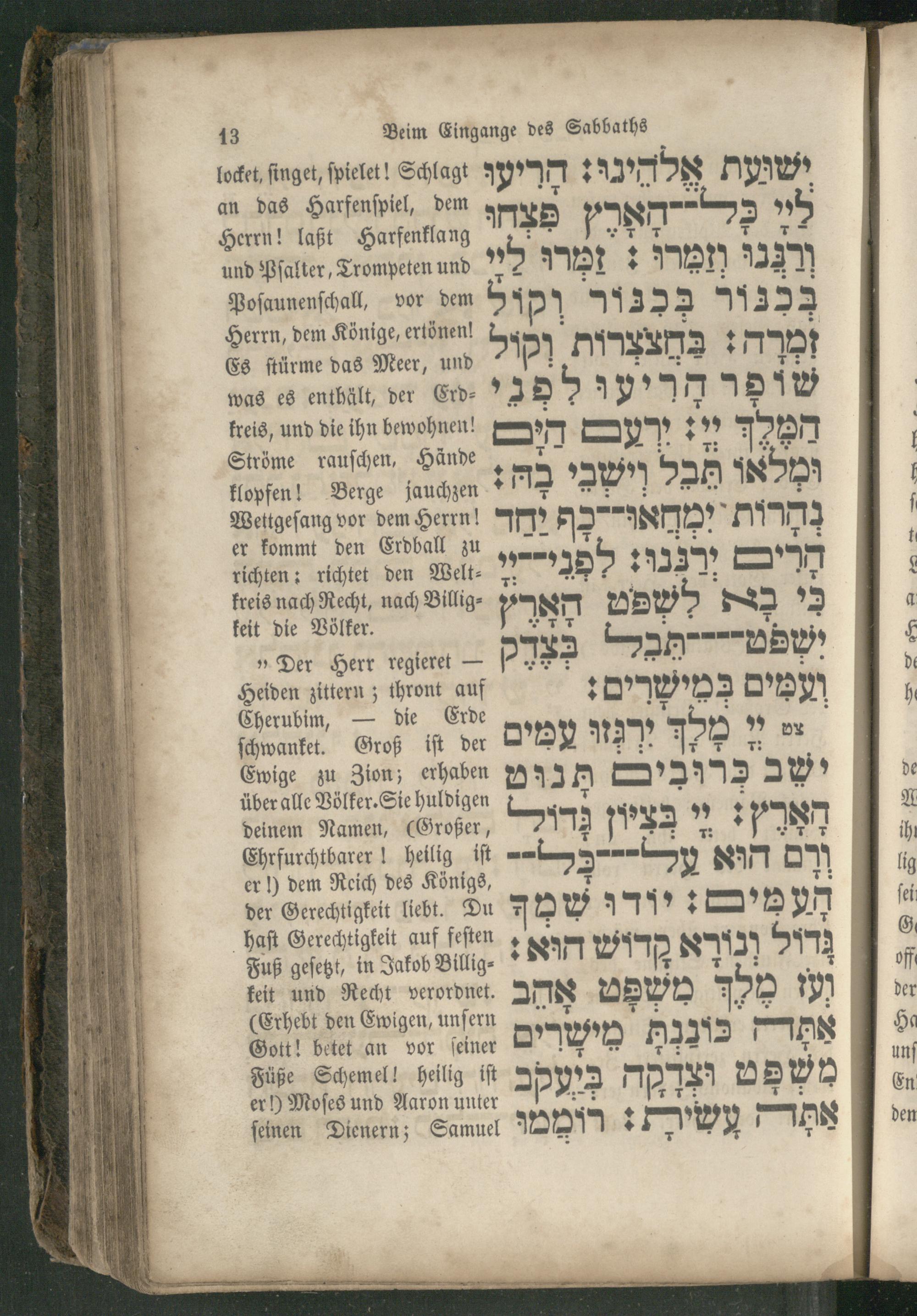13 Beim Eingange des Sabbaths . Schlagt ישועת אַלהִינו: הֶרִיעו an das Harfenſpiel, dem.