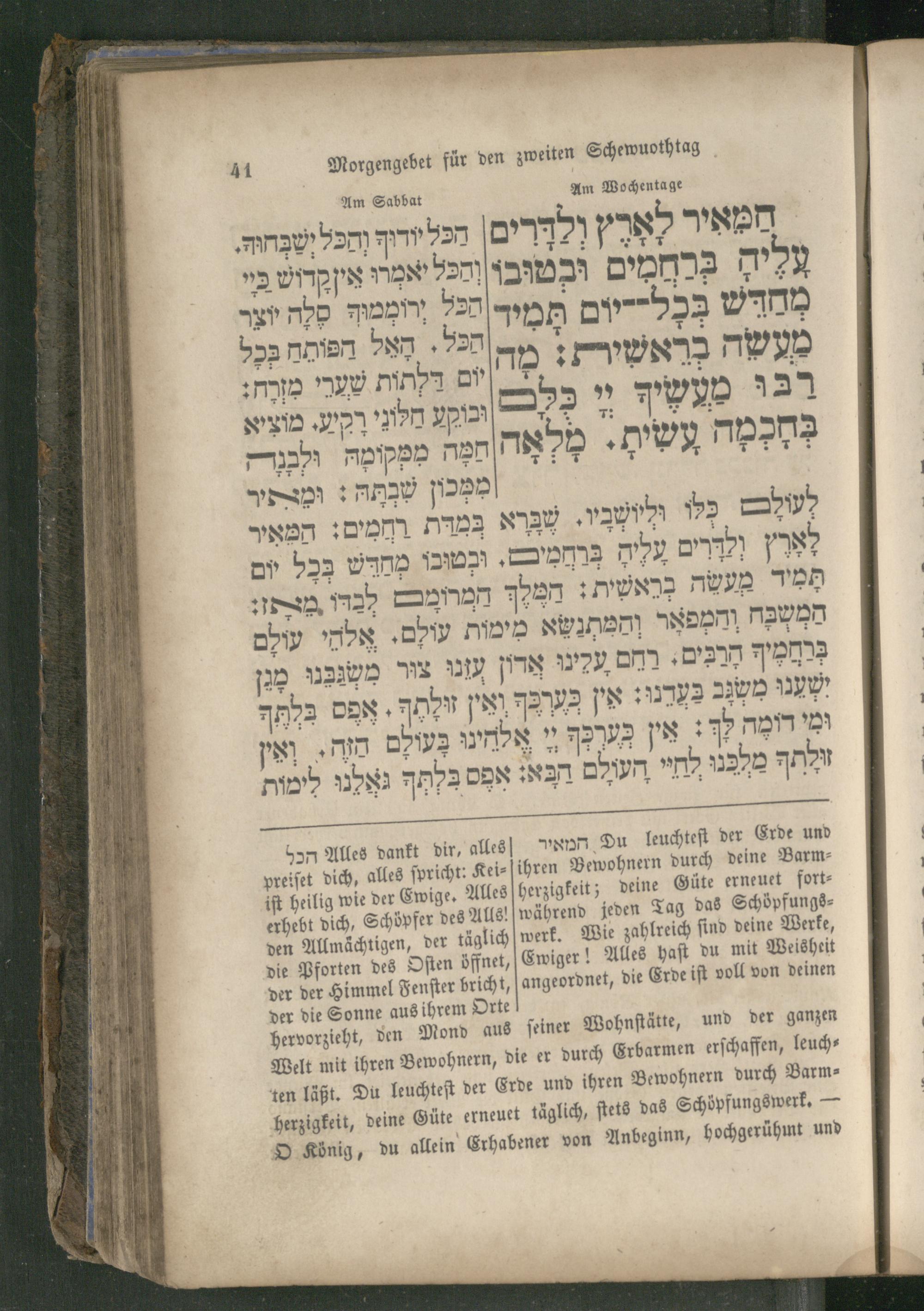 41 Morgengebet für den zweiten Schewuothtag Am Sabbat Am Wochentage