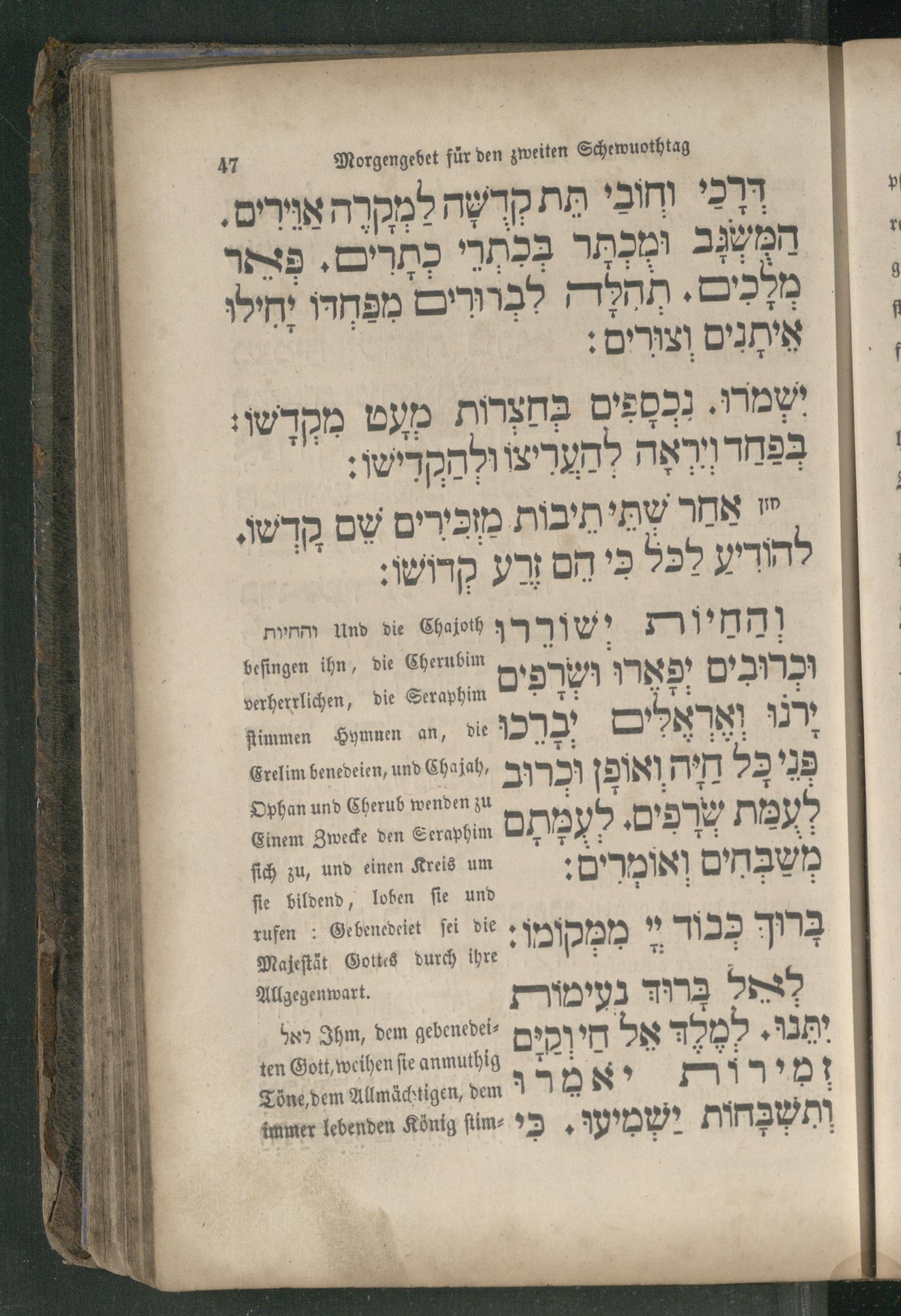 ſtimmen Hymnen an, die 7 ירנו ואַראלים Grelim benedeien, und Chajah, חיה ואופן וכרוב 27 29)