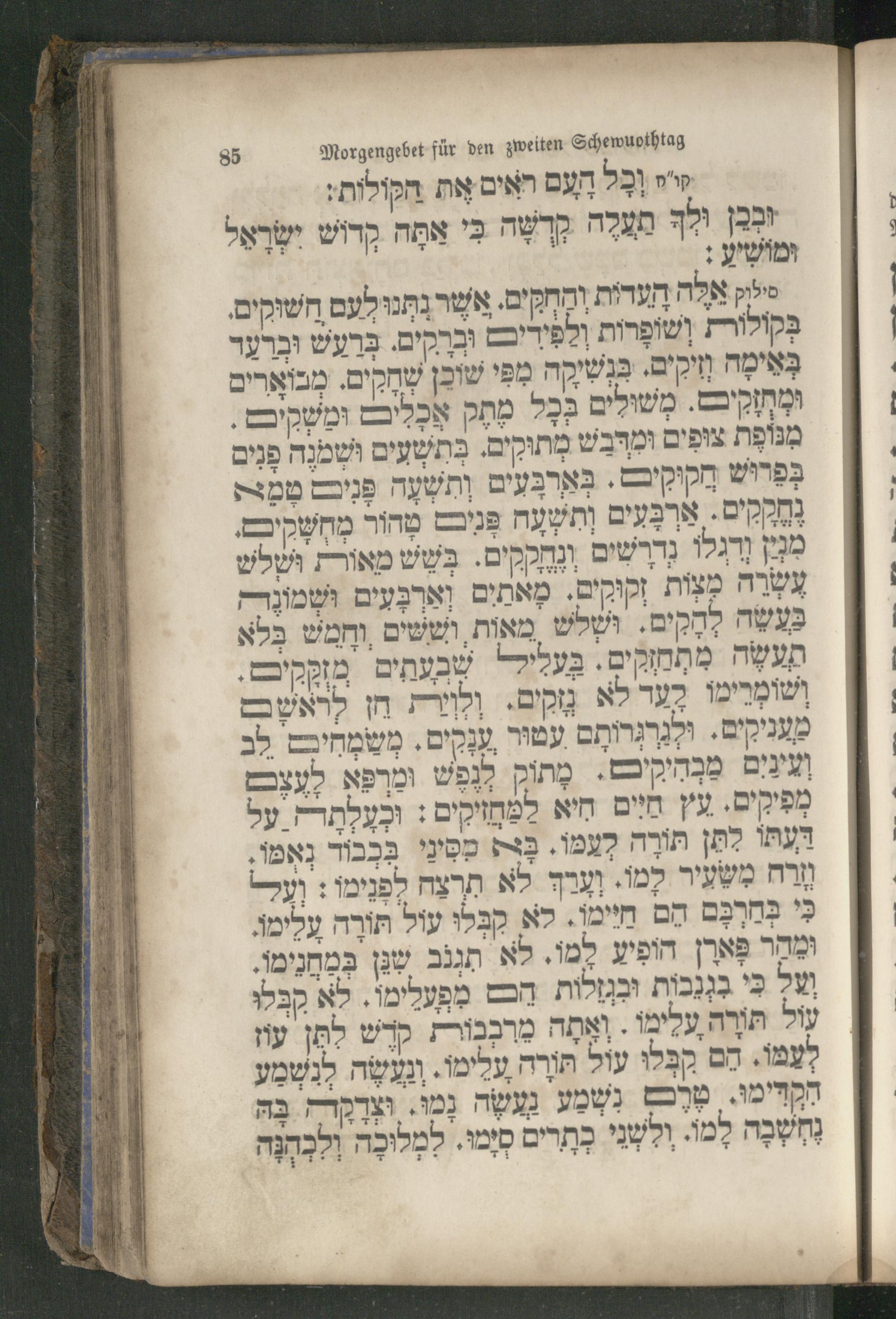 856 Morgengebet für den zweiten Schewuothtag העם ראים את הקולות:. b e בי אתה קרוש WA ולך תעלה r ומושיע: חשוקים. r mn סילוק אלה הערית והחקים. אשר ַּקולורת|שופָרות ולפידיםם וברקים. ברעש וברעד בה חיקים. כנשיקה מפי שוכן שחקים. ממוארים . משולים 223 מַתָק אְכָלִיםם ומשקיםש ES .„DPD מנופֶת צופים ורבש , בפרוש מקוקיםם. בְּארבעִים , ארבָּעים וְתשעה פניםם DR ורגלו. מאורת ושלש zh