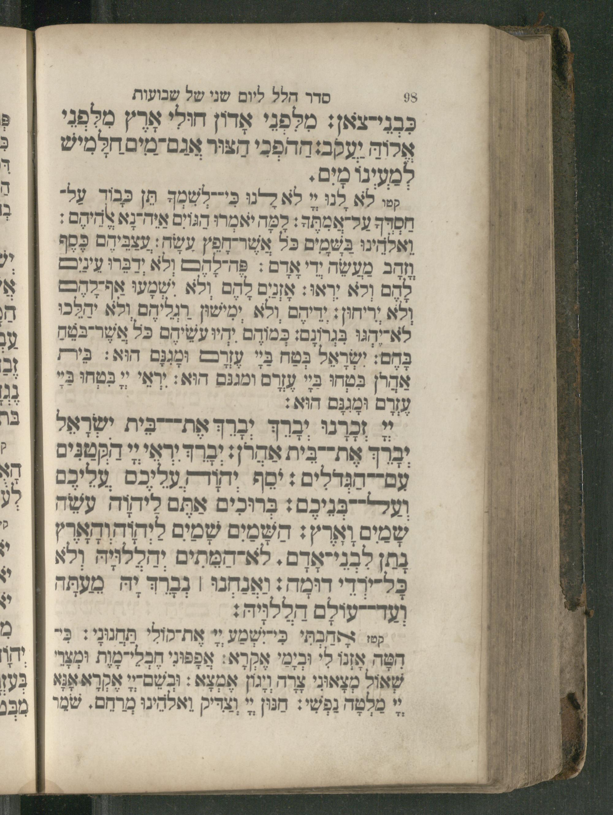 98 סדר הלל ליום שני של שבועות N wdr: er חולי אָרֶץ מלפני אלוה יעקבוההפָכִי הצור אגם"מיםחלמיש למעינו מִיִם.