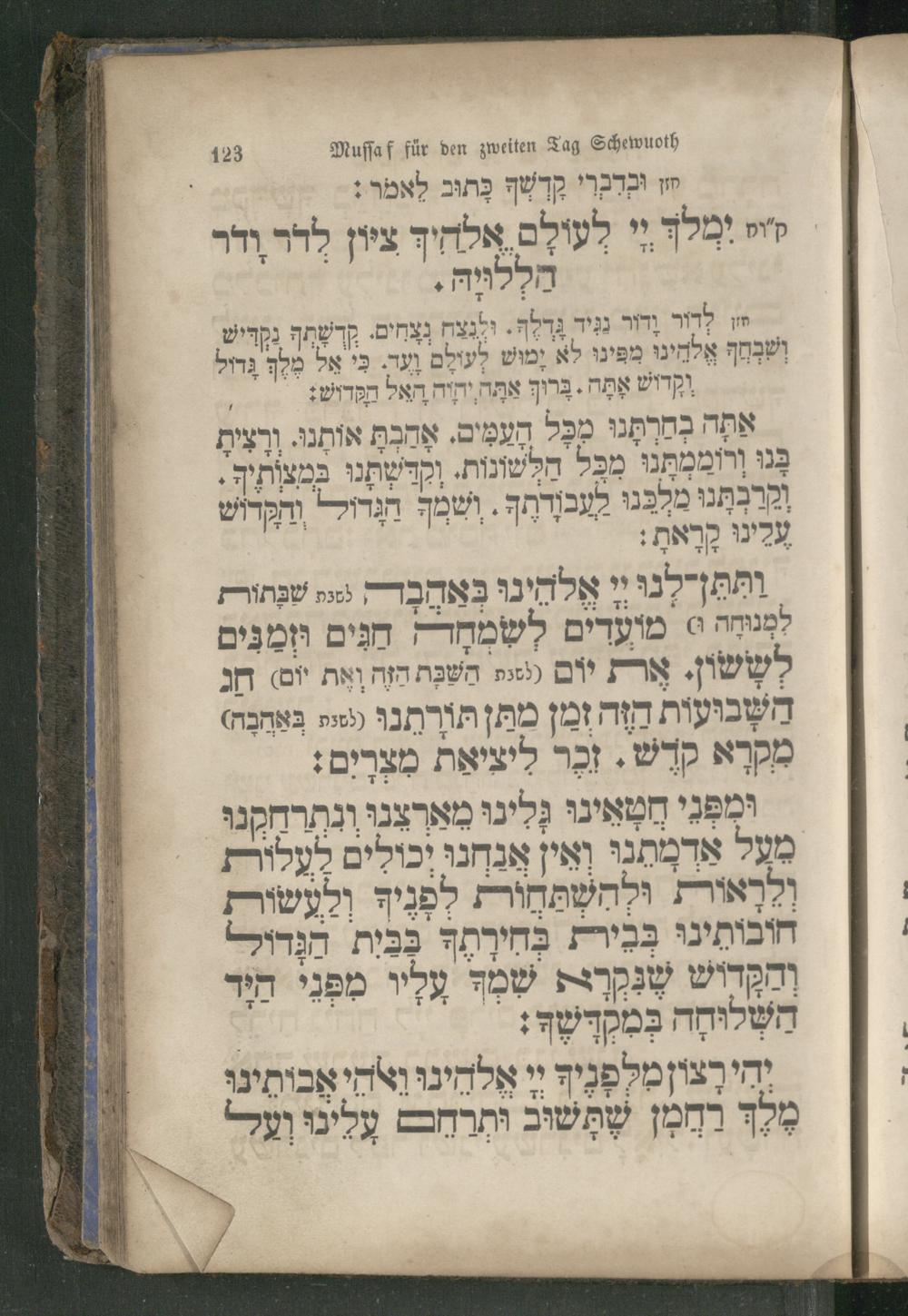123 Muffaf für den zweiten Tag Schewuoth ובדברי קדשף כַּתוּב לאמר: m אלחיך ציין לֶדר ודר se ge דוי ימלך ןי הַלְלויֶה. ודור נגיד גדלה. ולגצה נצחים. קדשתף נקדיש wr m
