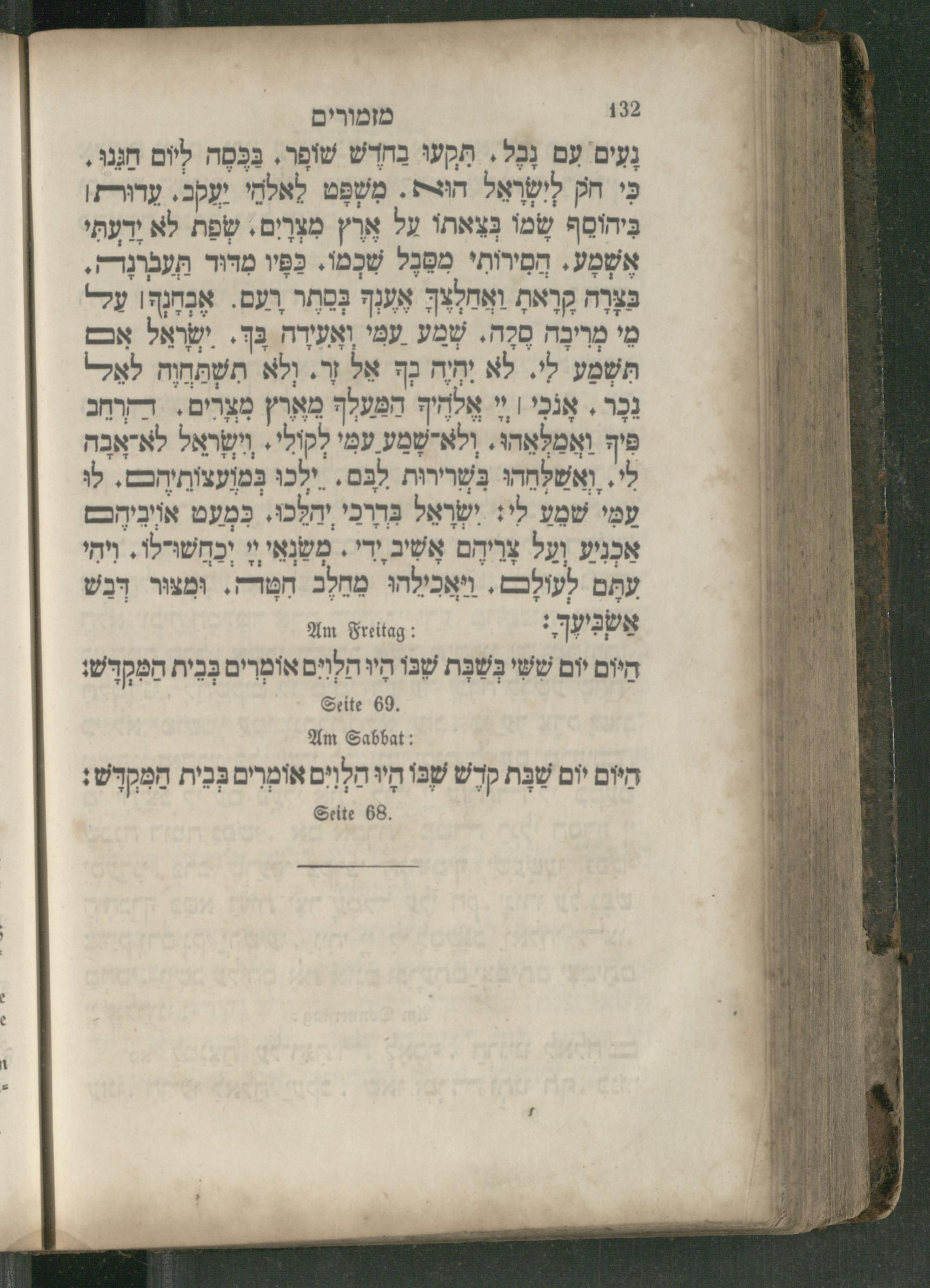 אַשבִּיעָך: Am Freitag: היום יום ששי בְּשְבּת ar הְיוהלוַיִםאומְריםבָּבִית הַמקרש: Seite 69.