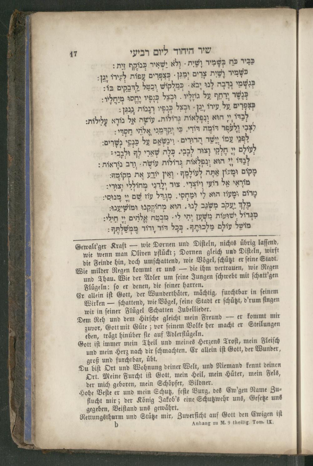 Hohe Veſte er und mein Schutz, feſte Burg, des Ew'gen Name Zuflucht mir; der König Jakob's eine Schutzwehr uns, Geſetze uns gegeben, Beiſtand uns gewährt.