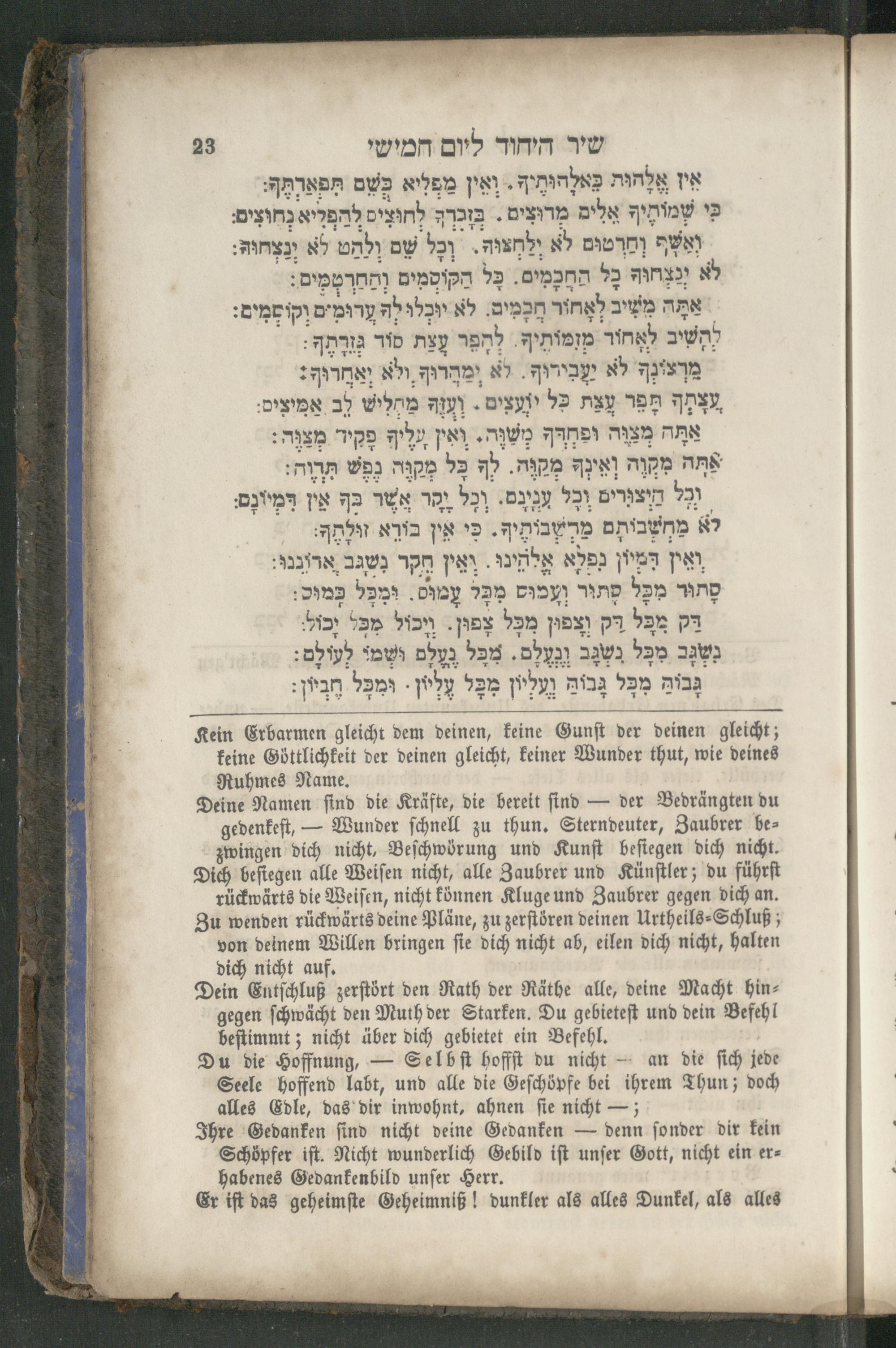 שיר היחוד ליום חמישי איז אֶלְהוּת ANAND ואִין, בי שָמותֶיף אָלִים מרוּצים. בזכרה, SWS ומרטוּם לא יְלחַצוה. bay. לא ינצְחוּה כל הַחְכָמִים. כָּל הקוסמים והחרטמים:| | אַתָּה משיב לְאֶחוּר חְכָמִים. לא. , Aa לא יעבירוף. לא מהַרוּף, ולא יאחרוף: DA DEM, עַצַת כל AI+ DEEP. ST ופמדף מְשוֶה. ואין. אתה„MAR AIR) IP לה 93 wr Ba Mapa 9 מוצורים 921(DM 921 יר TEN 3 אין DM לא an מַרֶשְביתֶיף. כִּי, ואִין DET נפלא אַלהינו. וְאִין חקר גשגב ,ארוננג: סְתוּר ben סתור וְעמוּס bat ‚Dany*r כָּמוּס: pa bar pa וצפון מפל, dal 920 טְגֶּב.D9ya) מכל גְעלֶם nu לְעולֶם: