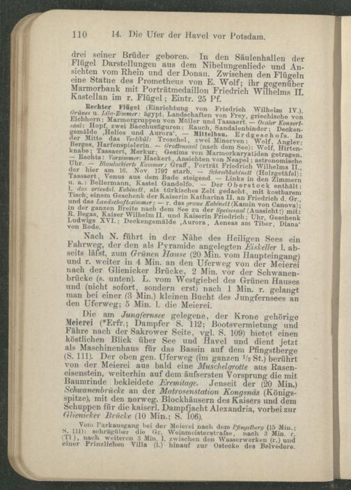 S. 111): schrägüber die Gr. Weinmeisterstraße, nach 3 Min. r. (TI), nach weiteren 3 Min. 1. zwischen den Wasserwerken (r.) und einer Prinzlichen Villa (1.) hinauf zur Ostecke des Belvedere.