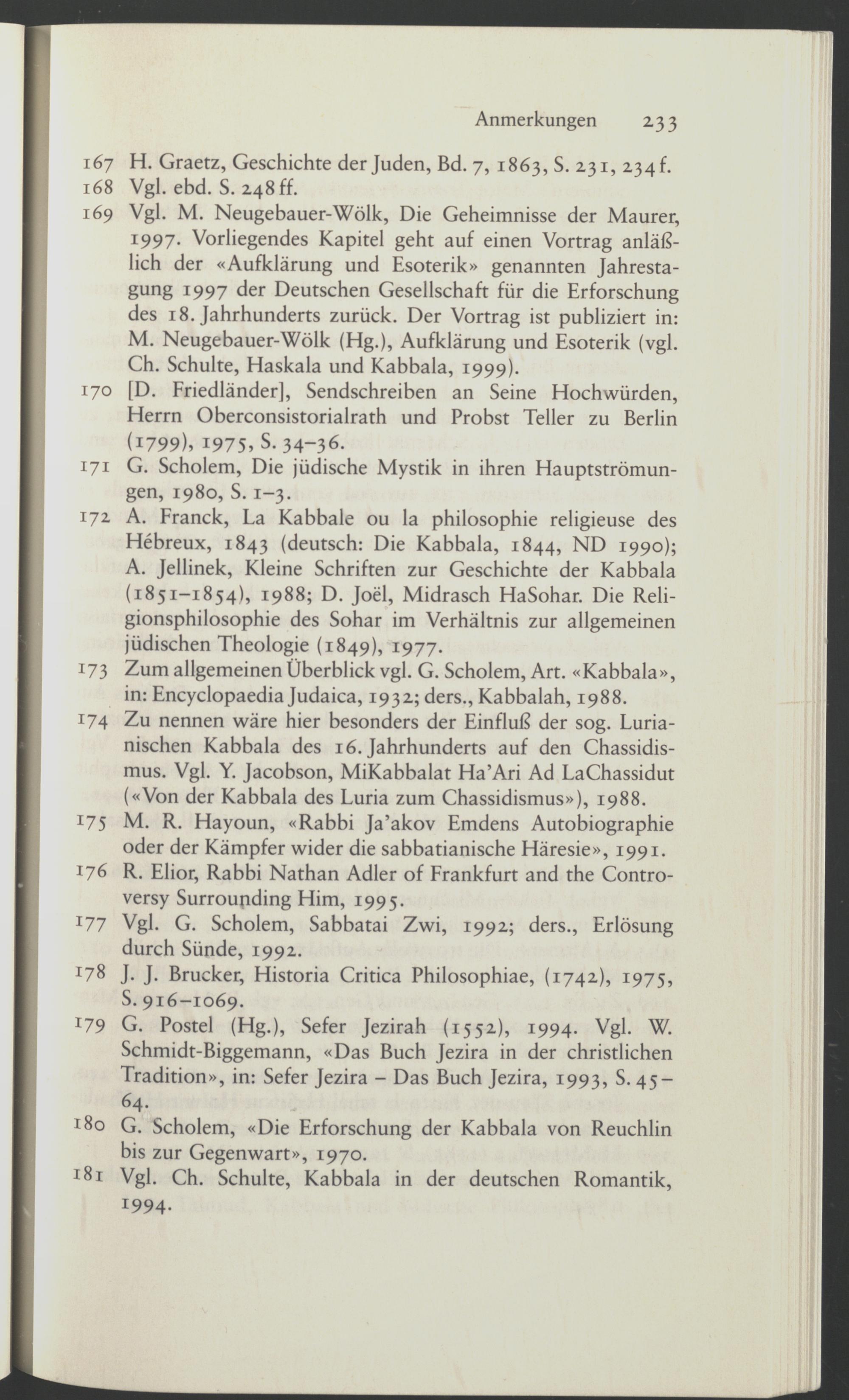 172 A. Franck, La Kabbale ou la philosophie religieuse des Hebreux, 1843 (deutsch: Die Kabbala, 1844, ND 1990); A. Jellinek, Kleine Schriften zur Geschichte der Kabbala (1851-1854), 1988; D. Joel, Midrasch HaSohar. Die Religionsphilosophie des Sohar im Verhältnis zur allgemeinen jüdischen Theologie (1849), 1977.