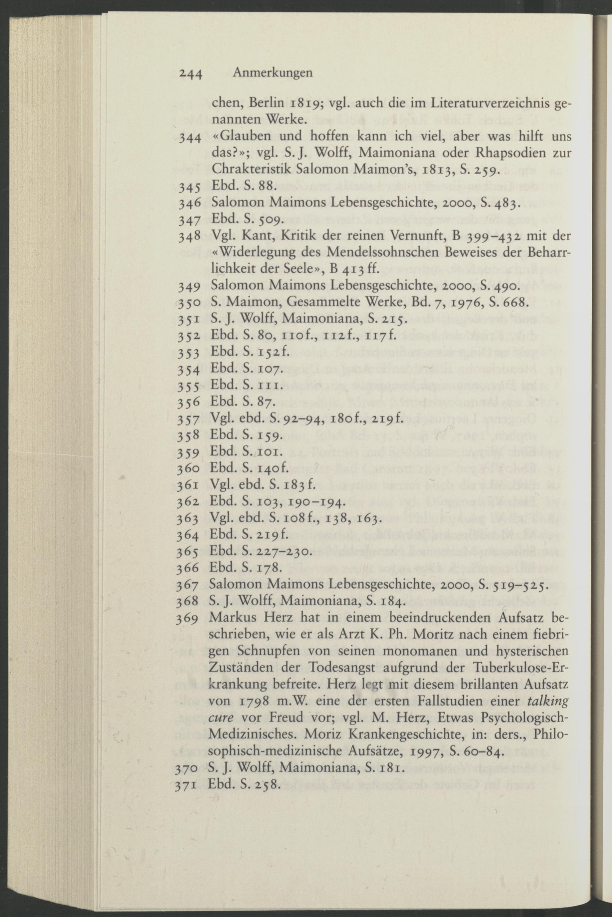 344 «Glauben und hoffen kann ich viel, aber was hilft uns das?»; vgl. S. J. Wolff, Maimoniana oder Rhapsodien zur Chrakteristik Salomon Maimon’s, 1813, S. 259.