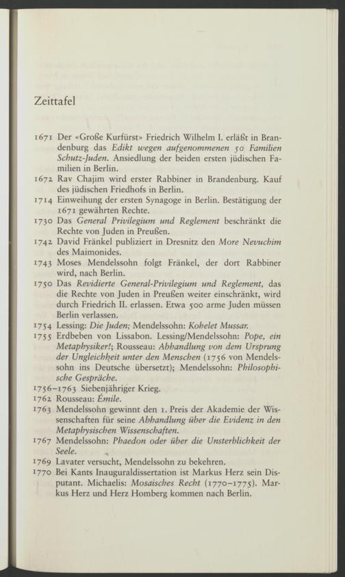 1743 Moses Mendelssohn folgt Fränkel, der dort Rabbiner wird, nach Berlin.
