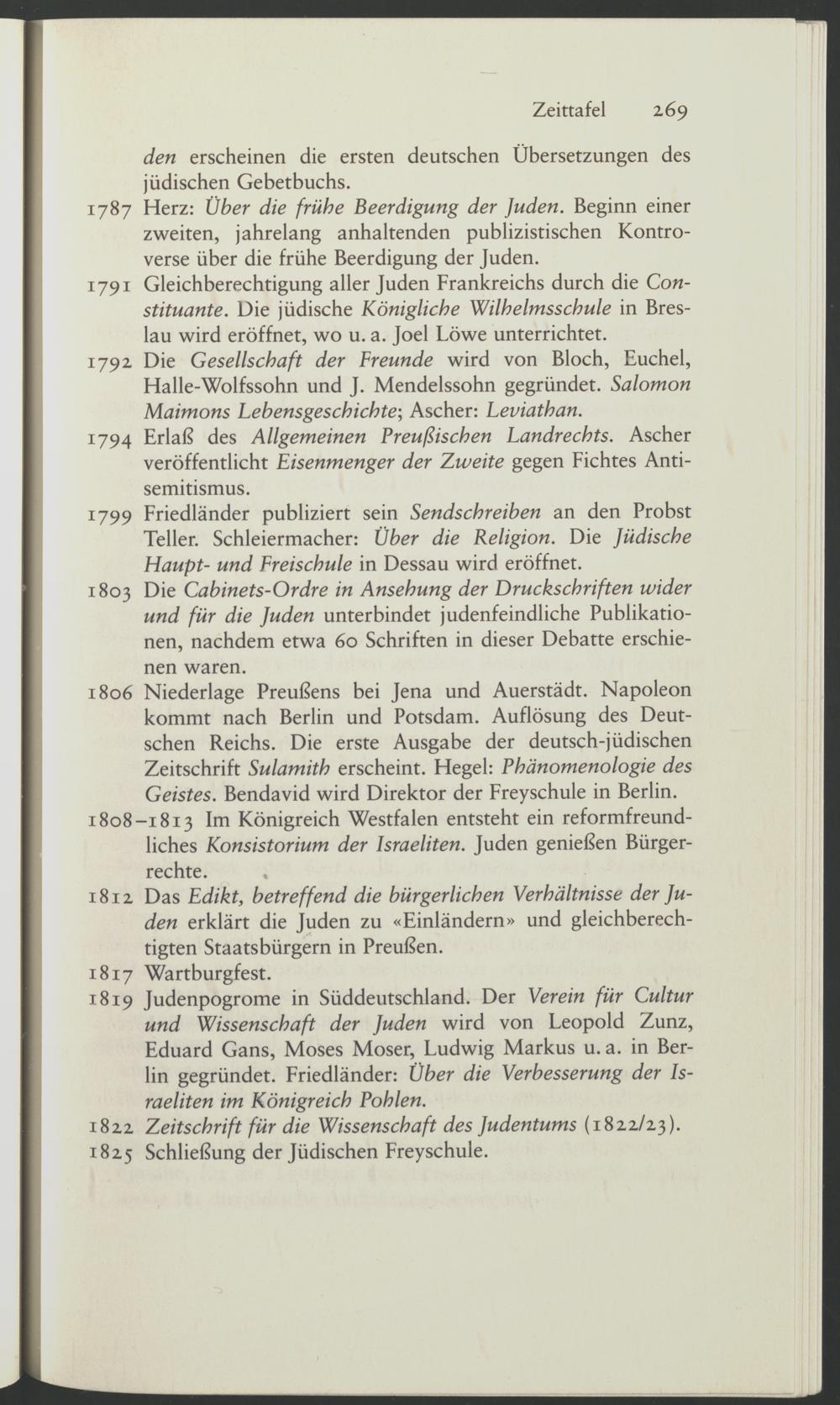 1806 Niederlage Preußens bei Jena und Auerstädt. Napoleon kommt nach Berlin und Potsdam. Auflösung des Deutschen Reichs. Die erste Ausgabe der deutsch-jüdischen Zeitschrift Sulamith erscheint. Hegel: Phänomenologie des Geistes. Bendavid wird Direktor der Freyschule in Berlin.