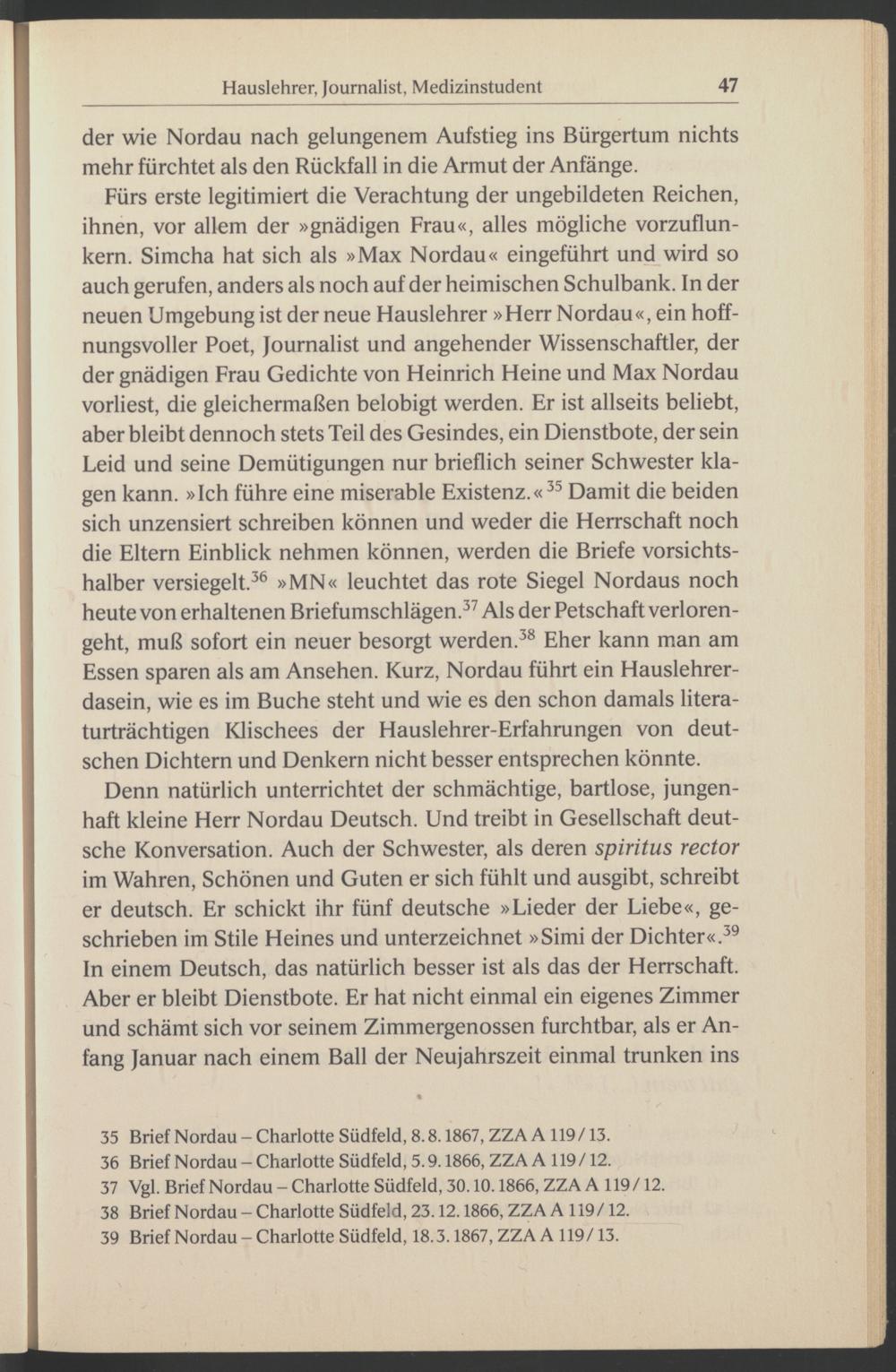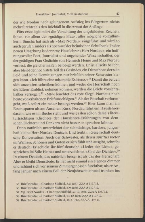 37 Vgl. Brief Nordau - Charlotte Südfeld, 30.10.1866, ZZA A 119 /12.