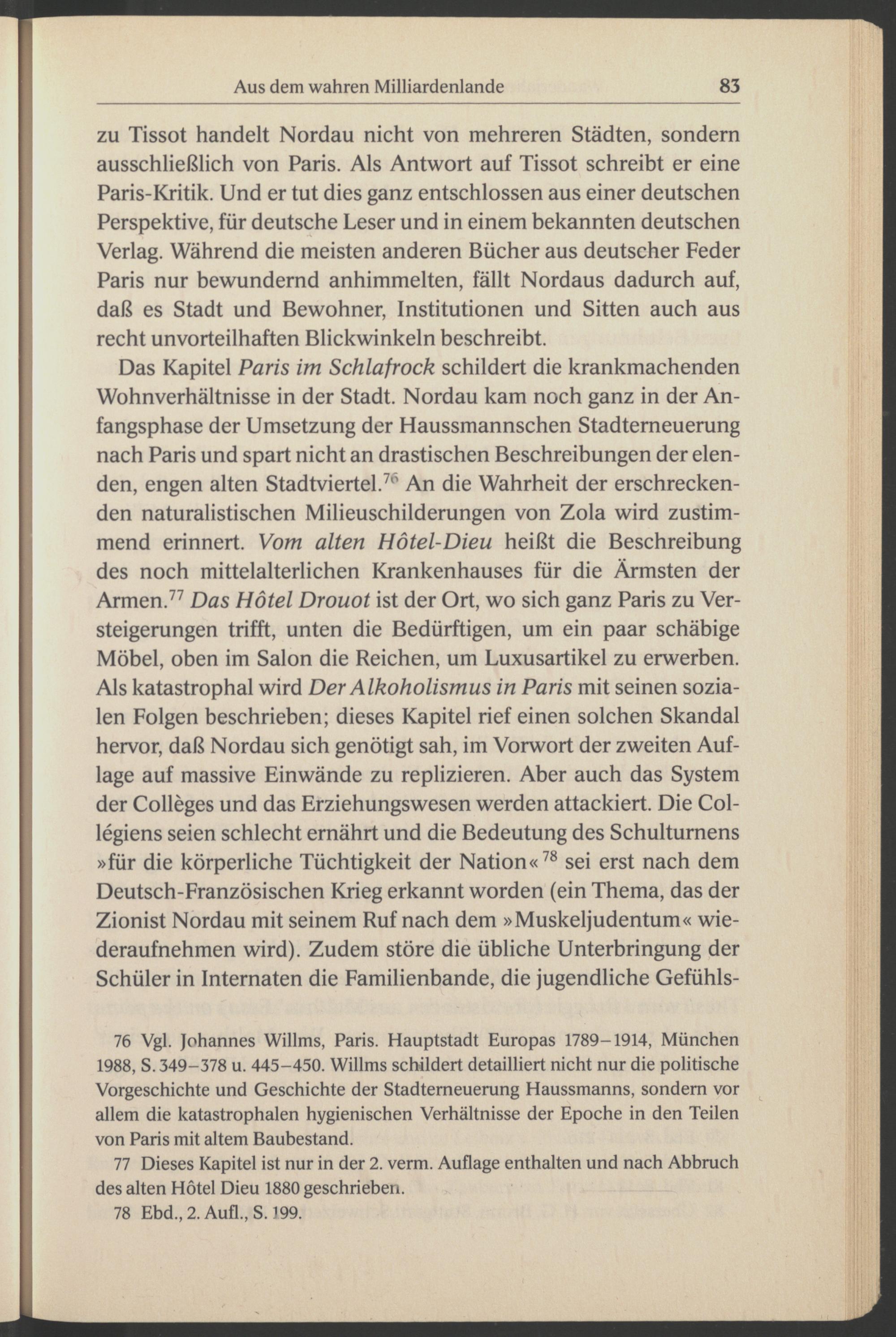 76 Vgl. Johannes Willms , Paris . Hauptstadt Europas 1789-1914, München 1988, S. 349-378 u. 445-450. Willms schildert detailliert nicht nur die politische Vorgeschichte und Geschichte der Stadtemeuerung Haussmanns, sondern vor allem die katastrophalen hygienischen Verhältnisse der Epoche in den Teilen von Paris mit altem Baubestand.