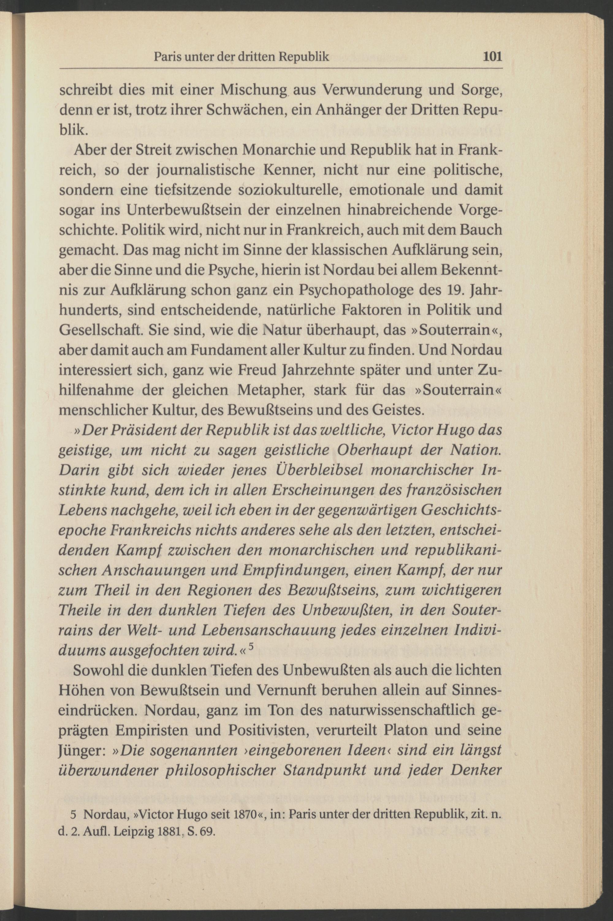5 Nordau, »Victor Hugo seit 1870«, in: Paris unter der dritten Republik, zit. n. d. 2. Aufl. Leipzig 1881. S. 69.