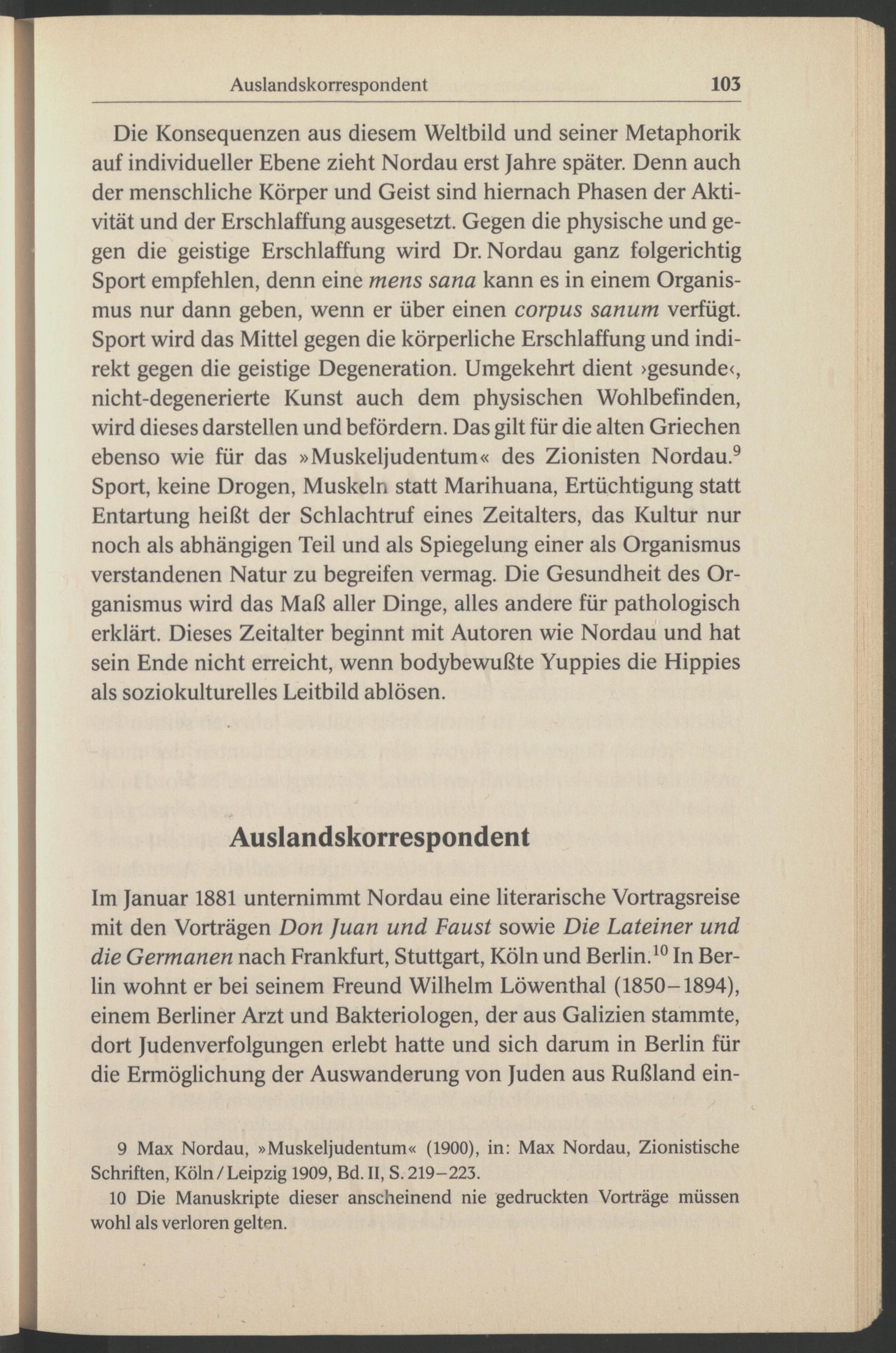 Im Januar 1881 unternimmt Nordau eine literarische Vortragsreise mit den Vorträgen Don Juan und Faust sowie Die Lateiner und die Germanen nach Frankfurt , Stuttgart , Köln und Berlin . 10 In Ber lin wohnt er bei seinem Freund Wilhelm Löwenthal (1850-1894), einem Berliner Arzt und Bakteriologen, der aus Galizien stammte, dort Judenverfolgungen erlebt hatte und sich darum in Berlin für die Ermöglichung der Auswanderung von Juden aus Rußland ein-