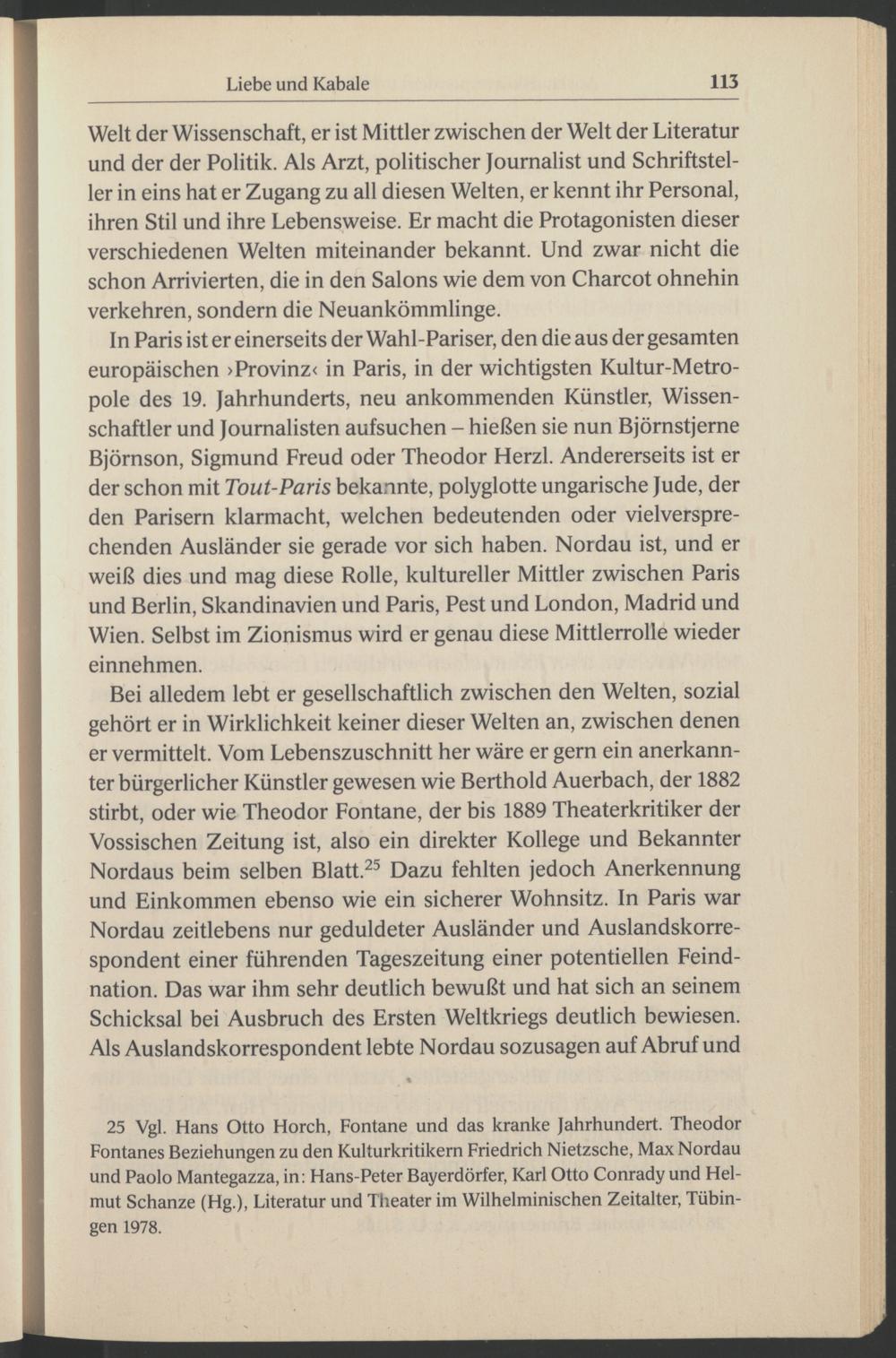 25 Vgl. Hans Otto Horch , Fontane und das kranke Jahrhundert. Theodor Fontanes Beziehungen zu den Kulturkritikern Friedrich Nietzsche , Max Nordau und Paolo Mantegazza , in: Hans-Peter Bayerdörfer , Karl Otto Conrady und Hel mut Schanze (Hg.), Literatur und Theater im Wilhelminischen Zeitalter, Tübin-