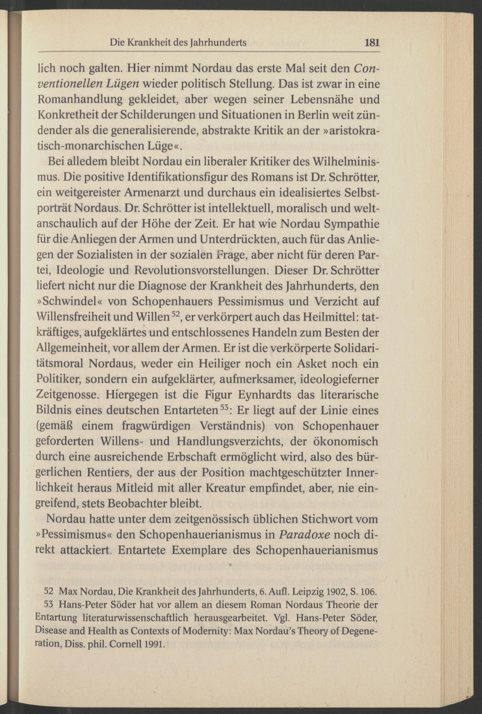 53 Hans-Peter Söder hat vor allem an diesem Roman Nordaus Theorie der Entartung literaturwissenschaftlich herausgearbeitet. Vgl. Hans-Peter Söder, Disease and Health as Contexts of Modernity : Max Nordau’s Theory of Degeneration, Diss. phil. Comell 1991.