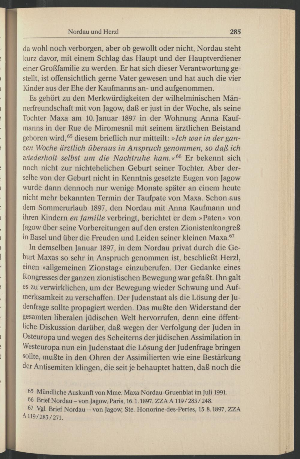 65 Mündliche Auskunft von Mme. Maxa Nordau-Gruenblat im Juli 1991.
