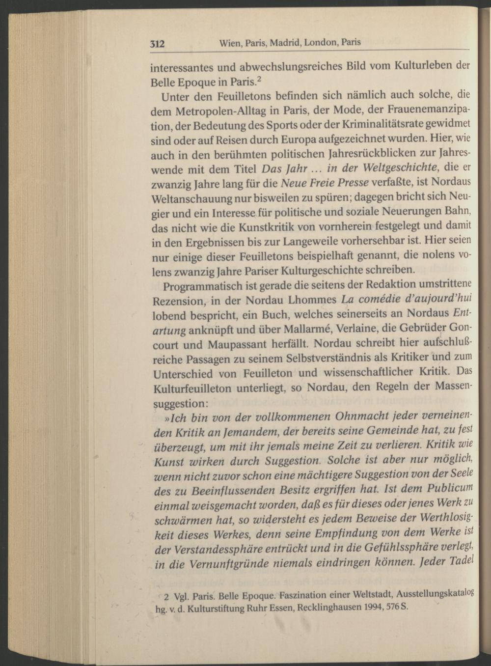 2 Vgl. Paris . Belle Epoque . Faszination einer Weltstadt, Ausstellungskatalog hg. v. d. Kulturstiftung Ruhr Essen, Recklinghausen 1994,576 S.
