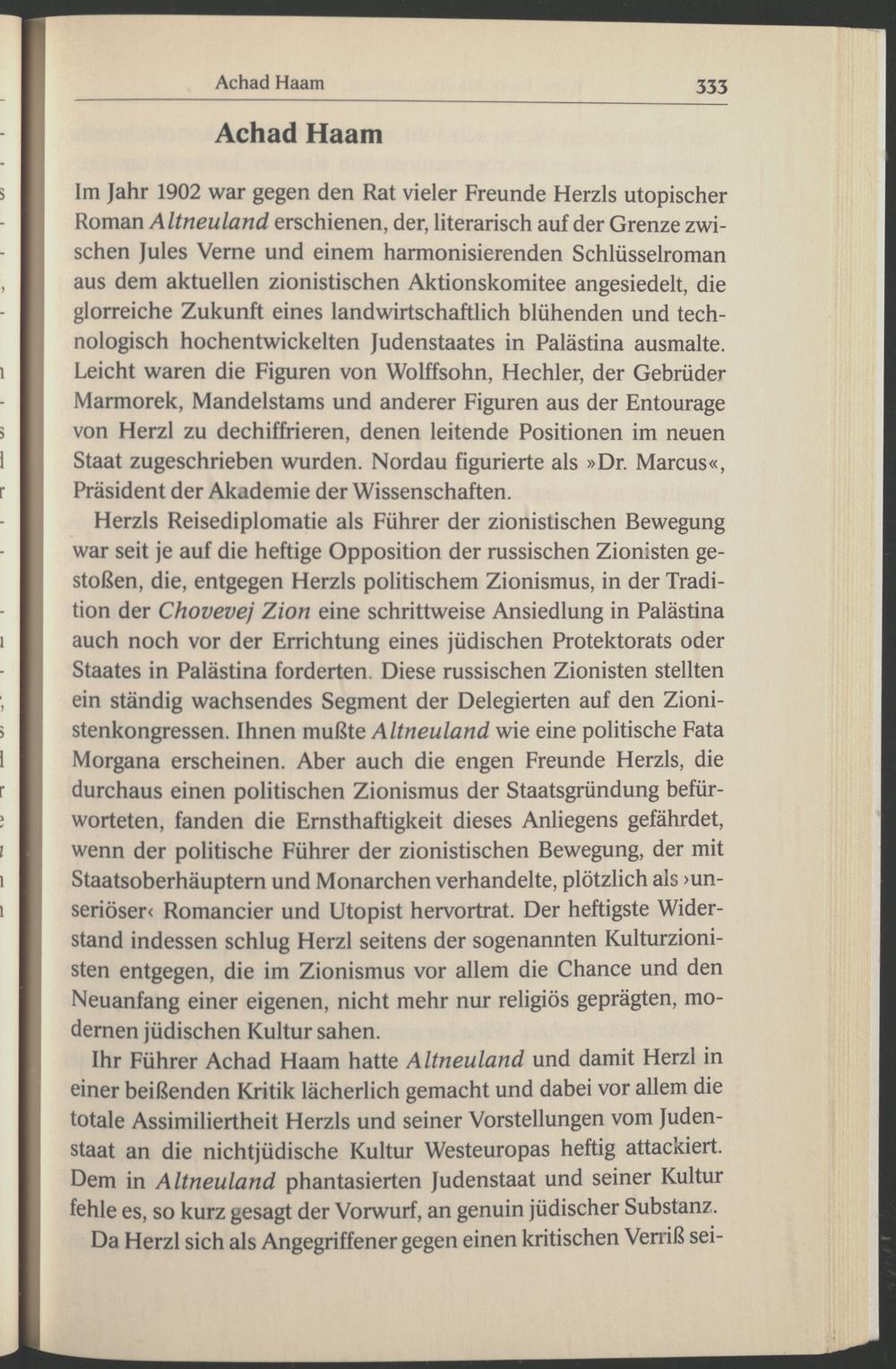 Ihr Führer Achad Haam hatte Altneuland und damit Herzl in einer beißenden Kritik lächerlich gemacht und dabei vor allem die totale Assimiliertheit Herzls und seiner Vorstellungen vom Judenstaat an die nichtjüdische Kultur Westeuropas heftig attackiert. Dem in Altneuland phantasierten Judenstaat und seiner Kultur fehle es, so kurz gesagt der Vorwurf, an genuin jüdischer Substanz.