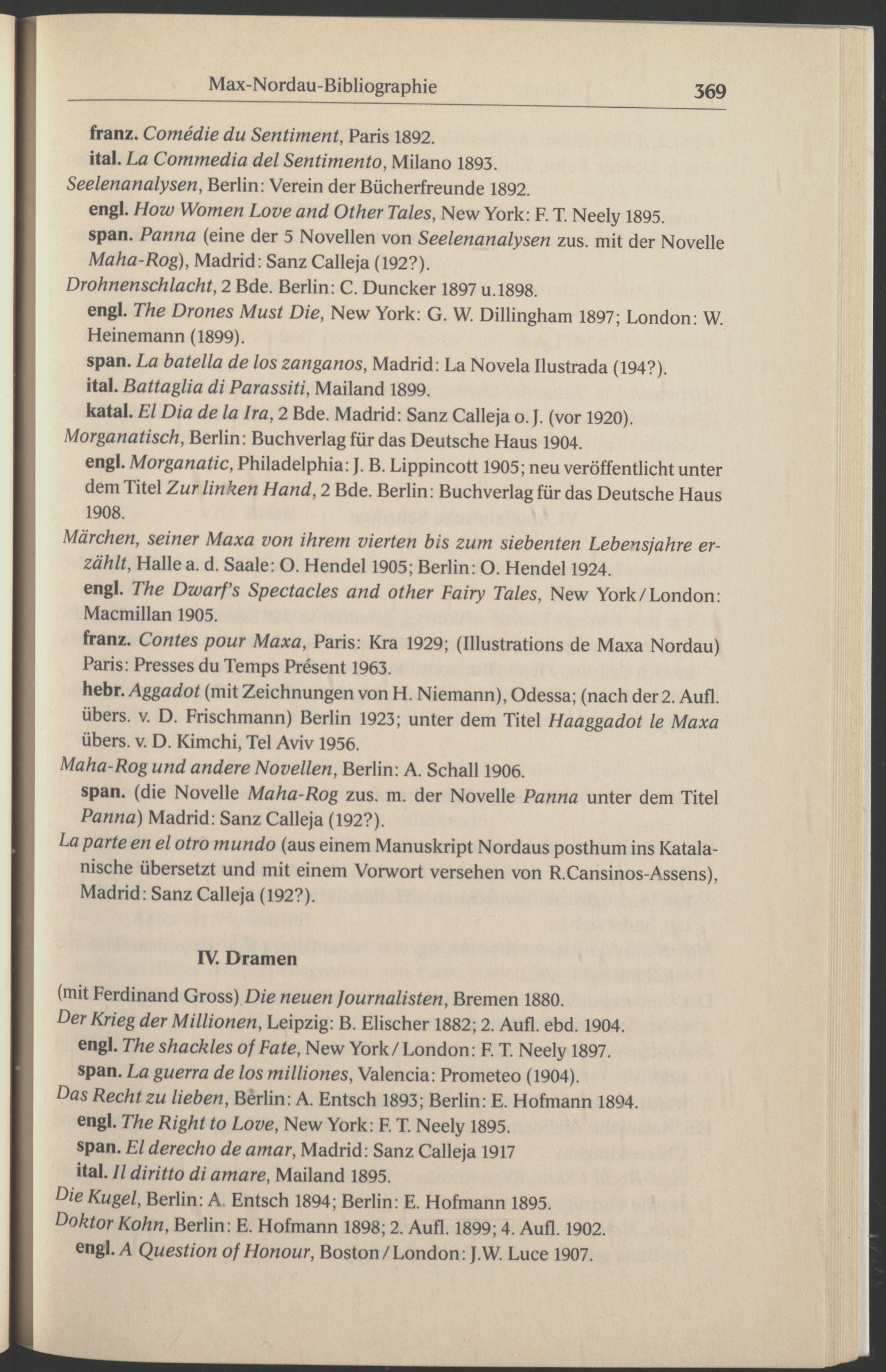 La parte en el otro mundo (aus einem Manuskript Nordaus posthum ins Katalanische übersetzt und mit einem Vorwort versehen von R.Cansinos-Assens), Madrid : Sanz Calleja (192?).