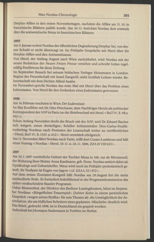 Im November spricht Nordau das erste Mal mit Herzl über das Problem eines Judenstaates. Von Herzl für den Gedanken eines Judenstaates gewonnen.