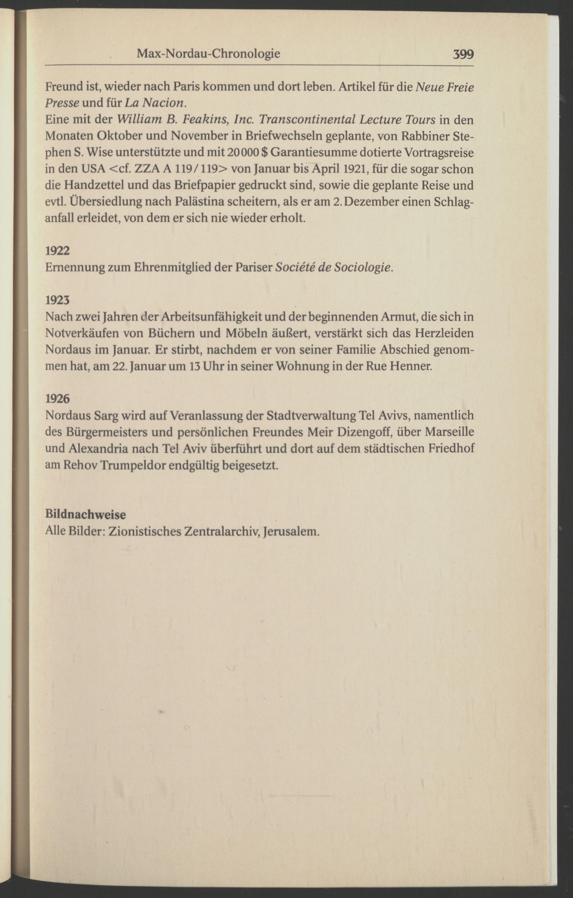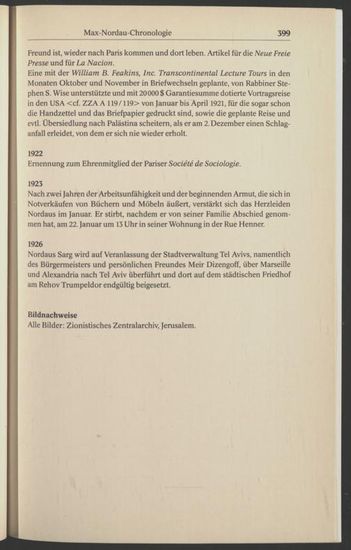 Eine mit der William B. Feakins, Inc. Transcontinental Lecture Tours in den Monaten Oktober und November in Briefwechseln geplante, von Rabbiner Ste phen S. Wise unterstützte und mit 20000 $ Garantiesumme dotierte Vortragsreise in den USA <cf. ZZA A 119/119> von Januar bis April 1921, für die sogar schon die Handzettel und das Briefpapier gedruckt sind, sowie die geplante Reise und evtl. Übersiedlung nach Palästina scheitern, als er am 2. Dezember einen Schlaganfall erleidet, von dem er sich nie wieder erholt.