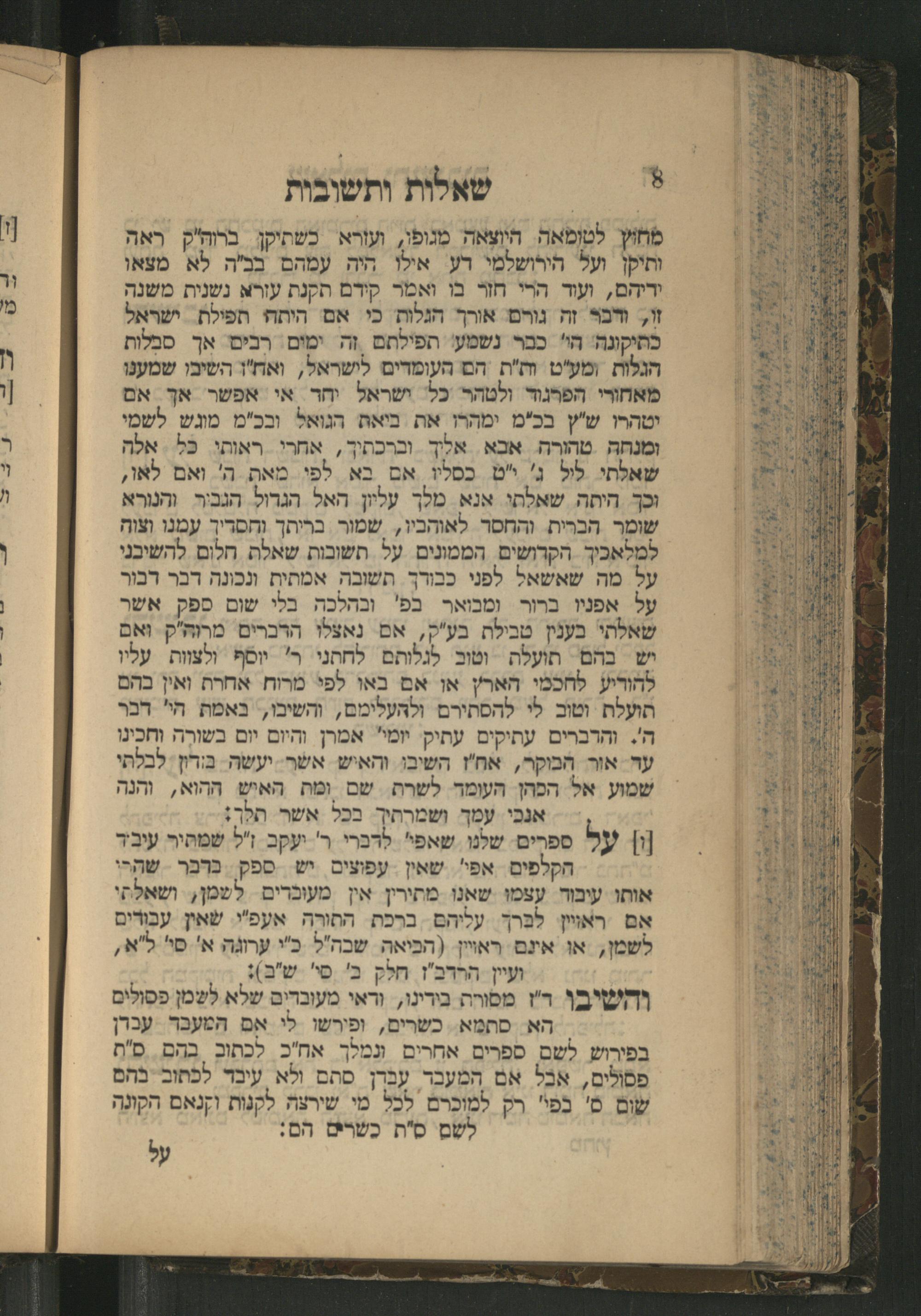 . שאלות ותשובות מחוץ לטומאה היוצאה מגופו, ועורא כשתיקן ברה"ק ראה ותיקן ועל הירושלמי רע אלו היה עמהם בה לא מצאו ידיהם, ועוד הרי חזר בו ואמר קירם תקנת עורא נשנית משנה ז, דכל זה גורם אורך הגלות כי אם היתה תפילת ישראל כתיקונה' הו" כבר נשמע! הפילתם זה ימום. רַבים. אך סבלות הגלות ומע"ט ות"ת הם העומדים לישראל, ואח"ו השיבו שמענו מאחורי הפרגוד ולטהר כל ישראל יחר אי אפשר אך אם יטהרו ש"ץ בכ"מ ימהרו את ביאת הגואל ובכ"מ מונש לשמי ומנחה טהורה אבא אלוך וברכתיך, אחרי ראותי כל אלה שאלתי לל ג'"ם כסלו אם בא לפי מאת ה' ואם לאו, וכך היתה שאלתי אנא מלך עליון האל הגרול הגביר. והנורא שומר הברית. והחסר לאוהביו, שמור בריתך והסריך עמנו וצות למלאכיך הקרושים הממונים על תשובות שאלת חלום להשיבני על מה שאשאל לפני כבודך תשובה אמתית נכונה דבר דבור על אפניו ברור ומבואר בפ' ובהלכה בלי שום ספק אשר שאלתי בענין טבילת בע"ק, אם נאצלו הרברים מרוה"ק ואם יש בהם תועלת וטוב לגלותם לחתני ר' יוסף ולצוות עליו להוריע לחכמי הארץ או אם באו לפי מרוח אחרת ואין בהם הועלת וטוב לי להסתירם ולהעלימם, והשיבו,, באמת הי" רבר ה'. והרברים עתיקים עתיק: יומי" אמרן והיום יים בשורֶה ותכינו עד אור הבוקר, אח'ז השיבו והאיש אשר: יעשה. בורון. לבלתי שמוע אל הפהן העומר לשרת שם ומת האיש ההוא, והנה אנכי עמך ושמרתיך בכל אשר תלך:
