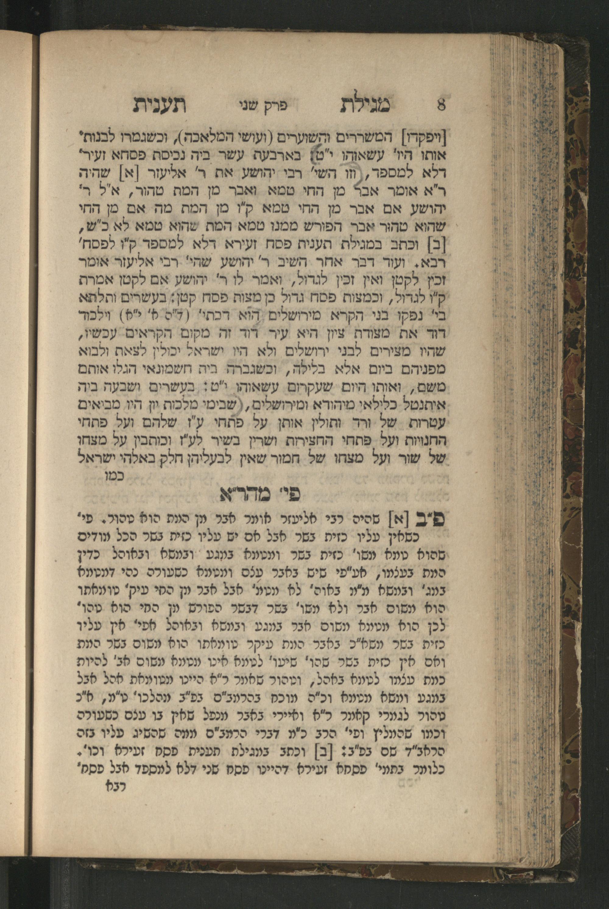 [ויפקדו] המשררים והשוערים(ועושי המלאכה), וכשגמרו לבנות* אותו הי" עשאוהו י"8) בארבעה עשר ביה נכיסת פסחא זעיר' דלא למספד,| וזו השי' רבי יהושע את ר' אליעזר[א] שהיה ר"א אומר אבף מן החי טמא ואבר מן המת טהור, א"ל ב' יהושע אם אבר מן החי טמא ק"ו מן המת מה אם מן החי שהוא טהור אבר הפורש ממנו טמא המת שהוא טמא לא כ"ש, [ב] וכתב במגילת תענית פסח זעירא רלא למספד ק"ו לפסח' רבא. ועור דבר אחר השיב ר' יהושע שהי' רבי אליעזר אומר זכין לקטן ואין זכין לגדול, ואמר לו ר' יהושע אם לקטן אמרת ק"ו לגרול, וכמצות פסח גדול כן מצות פסח קטן: בעשרים והלתא בי" נפקו בני הקרא מירשלים| הוא רכתי'(ל"סל' י"פ) וילכוד דוד את מצודת ציון היא עיר דוד זה מקום הקראים עכשיו, שהיו מצירים לבני ירושלים. ולא היו ישראל יכולין לצאת ולבוא מפניהם ביום אלא בלילה, וכשגברה ביה חשמונאי הגלו אותם משם, ואותו היום שעקרום עשאוהו י"ט: בעשרים ושבעה ביה איתנטל כלילאי מיהורא ומירושלים,(שבימי מלכות יון היו מביאים עטרות של ורד ותולין אותן על פתחי ע"ו שלהם ועל פתחי החנויות ועל פתחי החצירות ושרין בשיר לע"ז וכותבין על מצחו