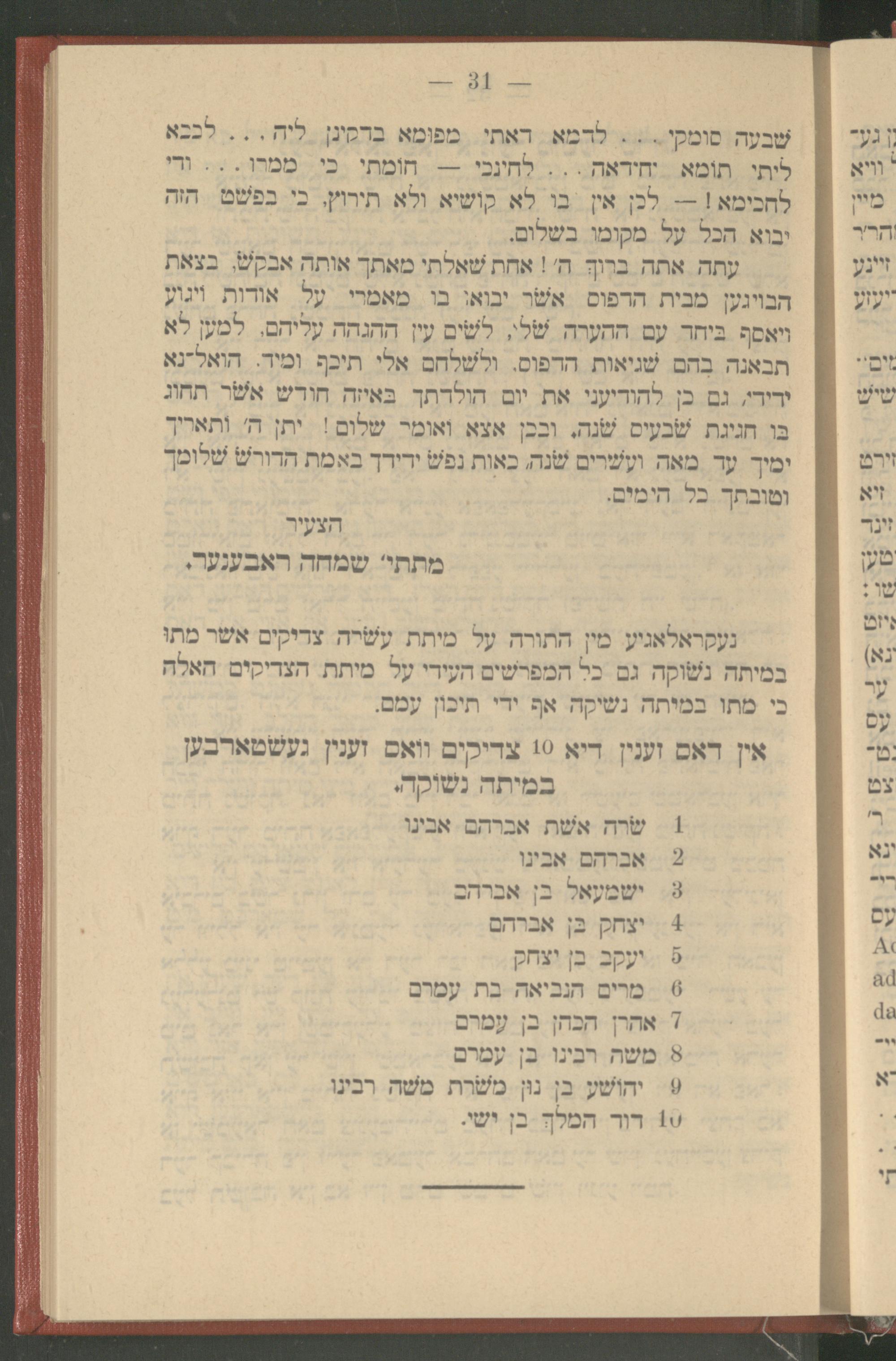 אין דאס זענין דיא 10 צדיקים וואס זענין געשטארבען במיתה נשׁוֹקה.