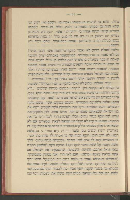 ואשר שאלת מדוע לא נאמר ביוסף מי המה אשר חנטו אותו? גם לא נאמר כי בניו קברוהו. כמו שנאמר באברהם יצחק ויעקב? שאלה זו כבר נשאלה בראשית רבה פרשה ק' וז"ל ויחנטו אותו מי חנטו. ר' יהודה אומר. רופאים חנטוהו, ור' פינחס אומר שבטים חנטוהו. שנאמר ויחנטו אותו ויישם בארון במצרים( ומי הן) ואלה שמות בני ישראל הבאים מצרימה עכ"ל המדוש. ולי נראה לפרש לדעת ר' יהודה ויחנטו אותו ויישם בארון( ע"י מי?) במצרים. וע"ד שאלתו מדוע לא נאמר ביוסף כי בניו קברוּהוֹ? תשובתי כי קבורה לא נקראה רק בנקבר במקום מנוחת עולמים דיא עווֹיגע רוהע." כדמוכח במס' ב"מ דף פ"ד ע"ב. והנה יוסף נטמן ארונו במצרים רק עד עת צאת ישׂראל ממצרים. שאז יעלו עצמותיו אתם כאשר השביעם ויקברוהו בשכם במקום אשר משם נלקח למצרים. והנה המצרים ידעו את השבועה אשר השביע יוסף את בני ישראל שבצאתם ממצרים יקחו ארונו אתם. לכן השקיעו את ארונו של יוסף בנהר נילוס. ובלי תפונה נזהרו לבל ידעו ב"י את המקום. וחשבו כי עי"ז לא יוכלו בני ישראל לצאת ממצרים אם לא ימצאו את הארון כמבואר בילקוט.( ובמד"ר פ' ברכה פי'א כתוב ענין זה באריכות יותר) ובשיס מס' סוטה דף י"ג ע"א אמרו כי גם משה רבנו לא ידע היכן יוסף קבור עד כי אמרה לו סרח בת אשר. כי המצרים עשו לו ארון של מתכת וקבעוהו בנהר נילוס הלך משה ועמד על שפת ואמר יוסף יוסף! הגיעה העת שׁנשבע הקב'ה שאני גואל אתכם, והגיעה השבועה שהשבעת את ישראל, אם אתה מראה עצמך מוטב. ואם לאו הרי אנו מנוקין משבועתך. ( ובמדרש תנחומא נאמר כי משה כתב ג"כ קמיע על חרס וזרקו לנילוס) מיד צף ארונו של יוסף ונטלו משה. וע"ז נאמר שם בגמרא כי בשכר שקבר יוסף אביו זכה לכבוד הזה שנתעסק עמו משה רבן של כל ישראל כמ"ש ויקח משה את עצמות יוסף עמו