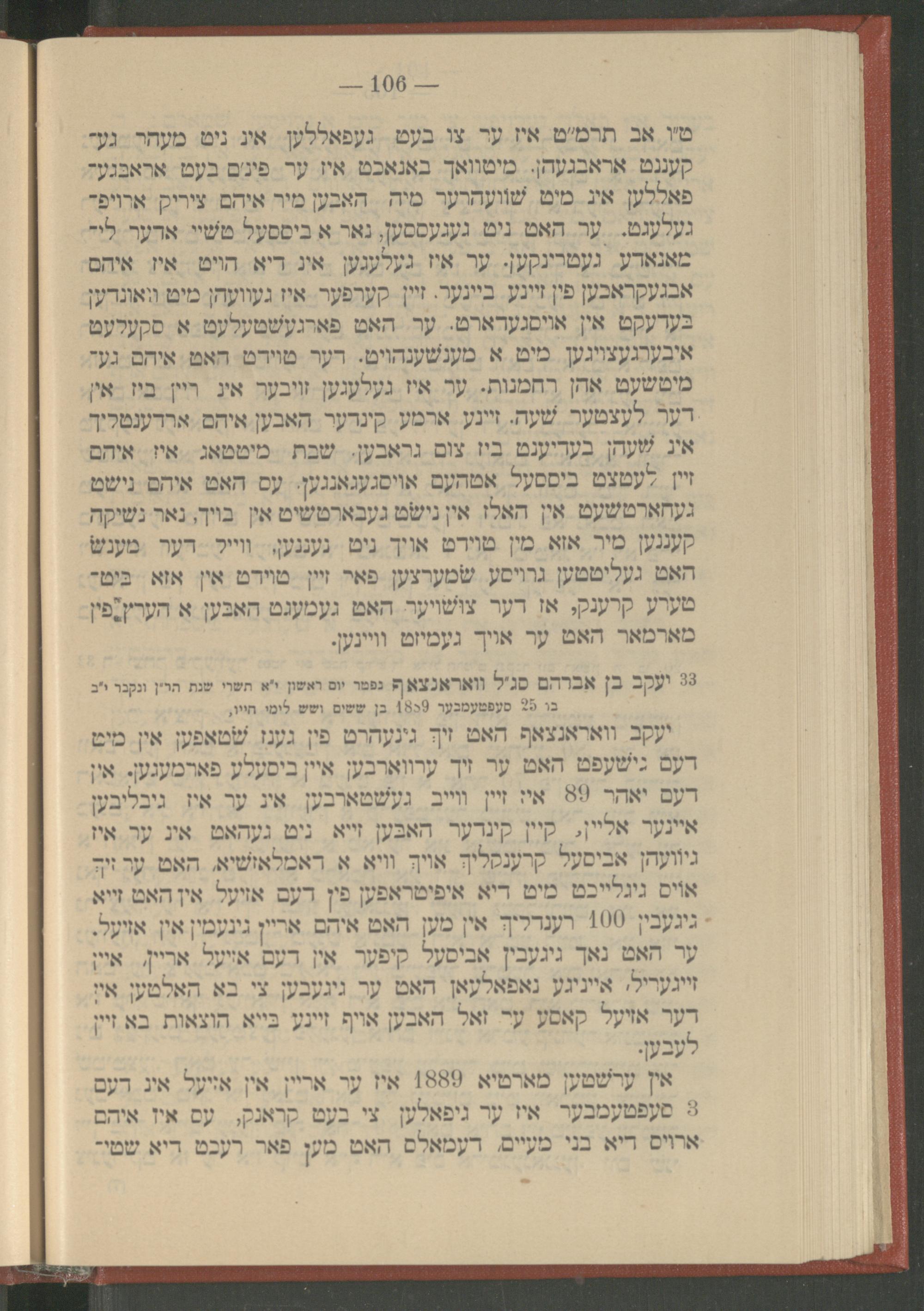 לעבען. אין ערשטען מארטיא 1889 איז ער אריין אין אויעל אין דעם 3 סעפטעמבער איז ער גיפאלען צי בעט קראנק, עס איז איהם ארויס דיא בני מעיים, דעמאלס האט מען פאר רעכט דיא שטי־