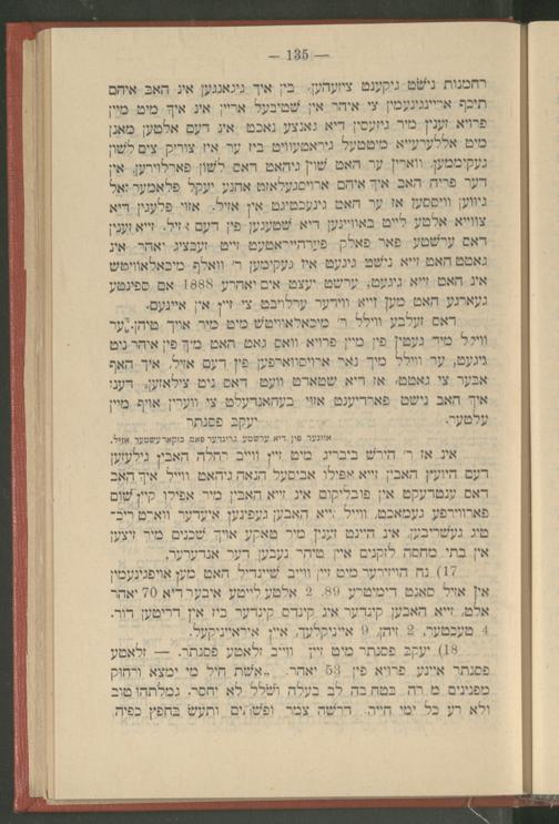 רחמנות נישט גיקענט ציזעהען, בין איך גיגאנגען אין האב איהם תיכף אריינגינעמין צי איהר אין שטיבעל אריין אין איך מיט מיין פרויא זענין מיר גיזעסין דיא גאנצע נאכט אין דעם אלטען מאנן מיט אללערעייא מיטטעל גיראטעוויט ביז ער איז צוריק צים לשון געקיממען, ווארין ער האט שוין גיהאט דאס לשון פארלוירען, אין דער פריה האב איך איהם ארויסגעלאזט אהנע יעקל פלאמער זאל גיווען וויססען אז ער האט גינעכטיגט אין אזיל. אזוי פלעגין דיא צווייא אלטע לייט באוויינען דיא שטעגען פון דעם* זיל. זייא זענין דאס ערשטע פאר פאלק פערהייראטעט זייט זעכציג יאהר אין גאטט האט זייא נישט גיגעט איז געקימען ר' וואלף מיכאלאוויטש אין האט זייא גיגעט, ערשט יעצט אים יאהרע 1888 אם ספינטע