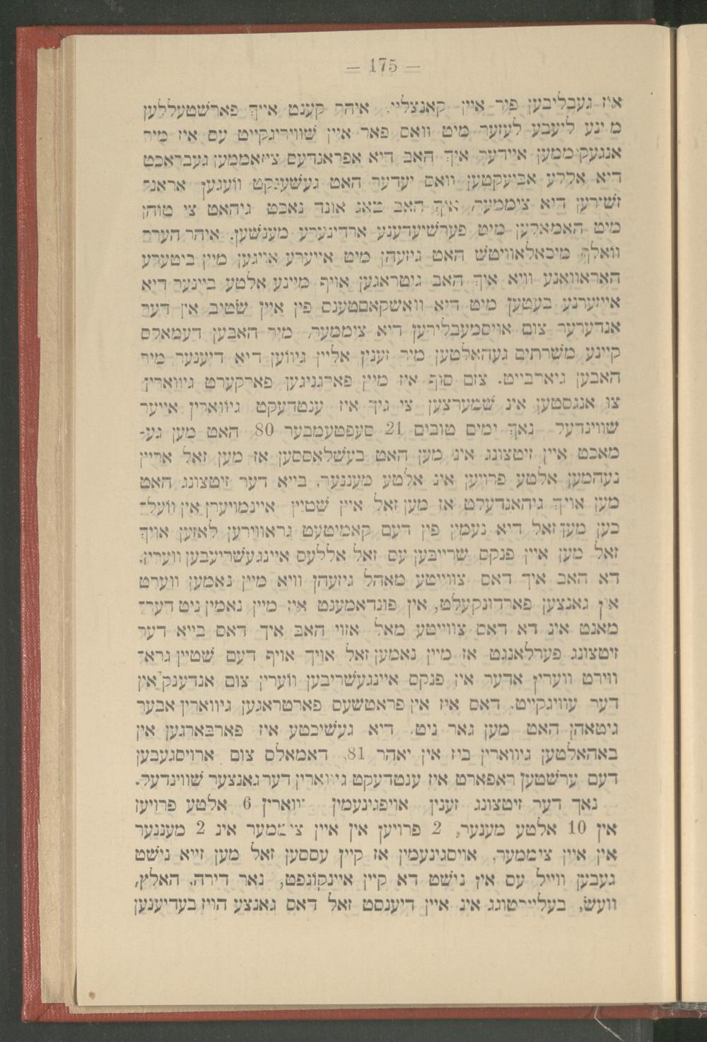 איז געבליבען פיר איין קאנצליי, איהר קענט אייך פארשטעללען מינע ליעבע לעזער מיט וואס פאר איין שוויריגקייט עס איז מיר אנגעק ממען איידער איך האב דיא אפראנדעס ציזאממען געבראכט דיא אללע אביעקטען וואס יעדער האט געשענקט וועגען אראני זשירען דיא ציממער איך האב באג אונד נאכט גיהאט צי טוהן מיט האמאלען מיט פערשיעדענע ארדינערע מענשען. איהר הערר וואלף מיכאלאוויטש האט גיזעהן מיט אייערע אויגען מיין ביטערע האראוואנע וויא איך האב גיטראגען אויף מיינע אלטע ביינער דיא אייזערנע בעטען מיט דיא וואשקאסטענס פין איין שטיב אין דער אנדערער צום אויסמעבלירען דיא ציממער מיר האבען דעמאלס קיינע משרתים געהאלטען מיר זענין אליין גיווען דיא דיענער מיר האבען גיארבייט. צום סוף אין מיין פארגניגען פארקערט גיווארין צו אנגסטען אין שמערצען צי גיך איז ענטדעקט גיווארין אייער שווינדעל נאך ימים טובים 21 סעפטעמבער 80 האט מען געמאכט איין זיטצונג אין מען האט בעשלאססען אז מען זאל אריין נעהמען אלטע פרויען אין אלטע מעננער, בייא דער זיטצונג האט מען אויך גיהאנדעלט אז מען זאל איין שטיין איינמויערן אין וועל־ כען מען זאל דיא נעמין פין דעם קאמיטעט גראווירען לאזען אויך זאל מען איין פנקס שרייבען עס זאל אללעס איינגעשריעבען ווערין. דא האב איך דאס צווייטע מאהל גיזעהן וויא מיין נאמען ווערט אין גאנצען פארדונקעלט, אין פונדאמענט אין מיין נאמין ניט דער־ מאנט אין דא דאס צווייטע מאל אזוי האב איך דאס בייא דער זיטצונג פערלאנגט אז מיין נאמען זאל אויך אויף דעם שטיין גרא־ ווירט ווערין אדער אין פנקס איינגעשריבען ווערין צום אנדענק אין דער עוויגקייט. דאס איז אין פראטשעס פארטראגען גיווארין אבער גיטאהן האט מען גאר ניט. דיא געשיכטע איז פארבארגען אין באהאלטען גיווארין ביז אין יאהר 81, דאמאלס צום ארויסגעבען דעם ערשטען ראפארט איז ענטדעקט גיווארין דער גאנצער שווינדעל. נאך דער זיטצונג זענין אויפגינעמין ווארין 6 אלטע פרויען אין 10 אלטע מענער, 2 פרויען אין איין ציממער אין 2 מעננער אין איין ציממער, אויסגינעמין אז קיין עססען זאל מען זייא נישט געבען ווייל עס איז נישט דא קיין איינקונפט, נאר דירה, האלץ, ועש, בעלייכטוגג אין איין דיענסט זאל דאס גאנצע הויז בעדיענען