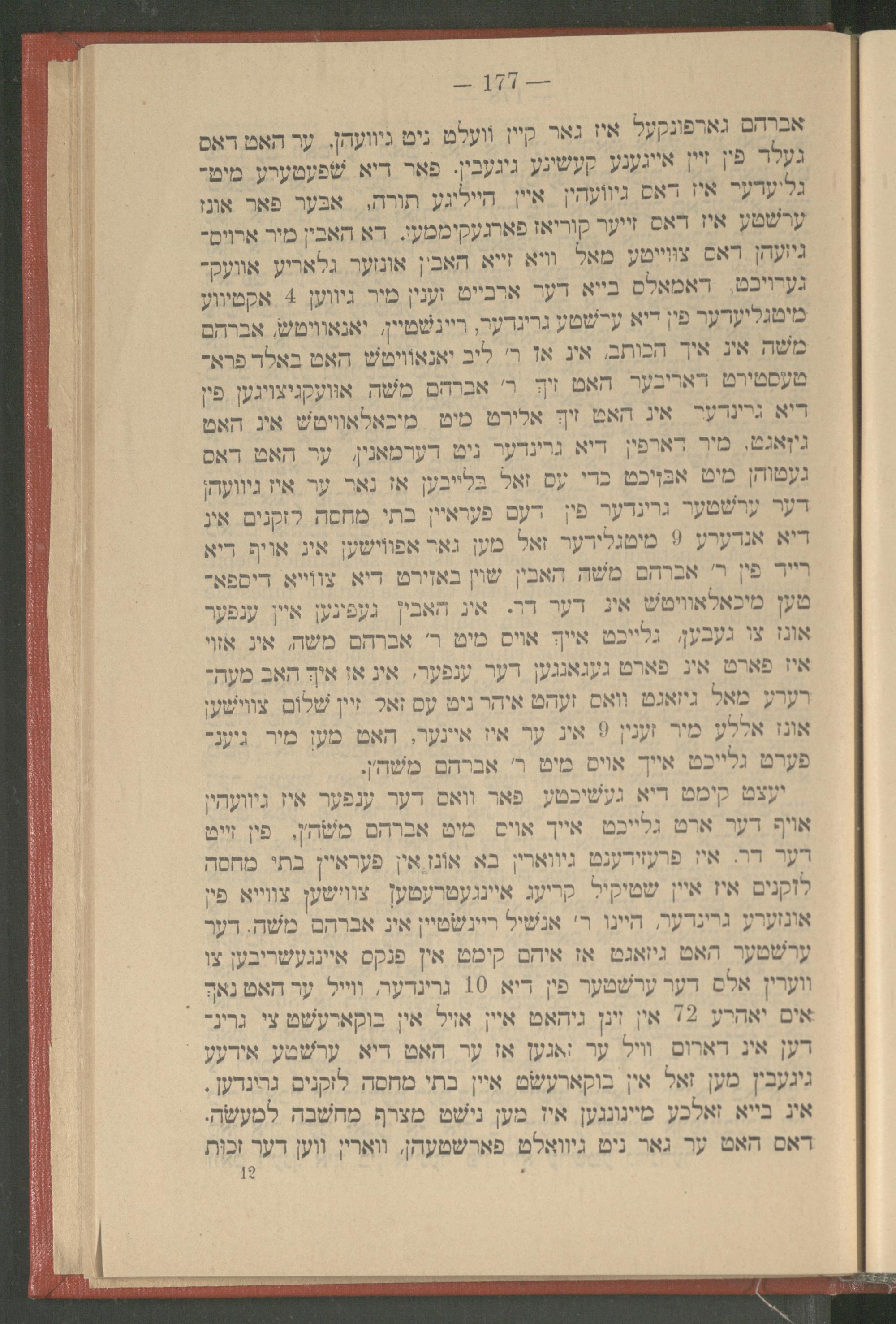 אברהם גארפונקעל איז גאר קיין וועלט ניט גיוועהן, ער האט דאס געלד פין זיין אייגענע קעשינע גיגעבין. פאר דיא שפעטערע מיט־ גליעדער איז דאס גיוועהין איין הייליגע תורה, אבער פאר אונז ערשטע איז דאס זייער קוריאז פארגעקיממען. דא האבין מיר ארויס־ גיזעהן דאס צווייטע מאל וויא זייא האבין אונזער גלאריע אוועק־ גערויכט, דאמאלס בייא דער ארבייט זענין מיר גיווען 4 אקטיווע מיטגליעדער פין דיא ערשטע גרינדער, ריינשטיין, יאנאוויטש, אברהם משה אין איך הכותב, אין אז ר' ליב יאנאוויטש האט באלד פרא־ טעסטירט דאריבער האט זיך ר' אברהם משה אוועקגיצויגען פין דיא גרינדער אין האט זיך אלירט מיט מיכאלאוויטש אין האט גיןאגט, מיר דארפין דיא גרינדער ניט דערמאנין. ער האט דאס געטוהן מיט אבזיכט כדי עס זאל בלייבען אז נאר ער איז גיוועהן דער ערשטער גרינדער פון דעם פעראיין בתי מחסה לזקנים אין דיא אנדערע 9 מיטגלידער זאל מען גאר אפווישען אין אויף דיא רייד פין ר' אברהם משה האבין שוין באזירט דיא צווייא דיספא־ טען מיכאלאוויטש אין דער דר. אין האבין געפינען איין ענפער אונז צו געבען גלייכט אייך אויס מיט ר' אברהם משה, אין אזוי איז פארט אין פארט געגאנגען דער ענפער, אין אז איך האב מעה־ רערע מאל גיזאגט וואס זעהט איהר ניט עס זאל זיין שלום צווישען אונז אללע מיר זענין 9 אין ער איז איינער, האט מען מיר גיעני פערט גלייכט אייך אויס מיט ר' אברהם משה'ן.