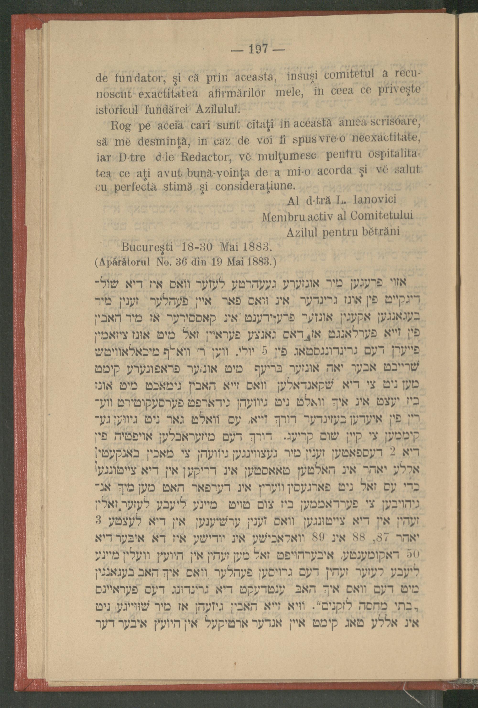 ( Apărătorul No. 36 din 19 Mai 1883.)