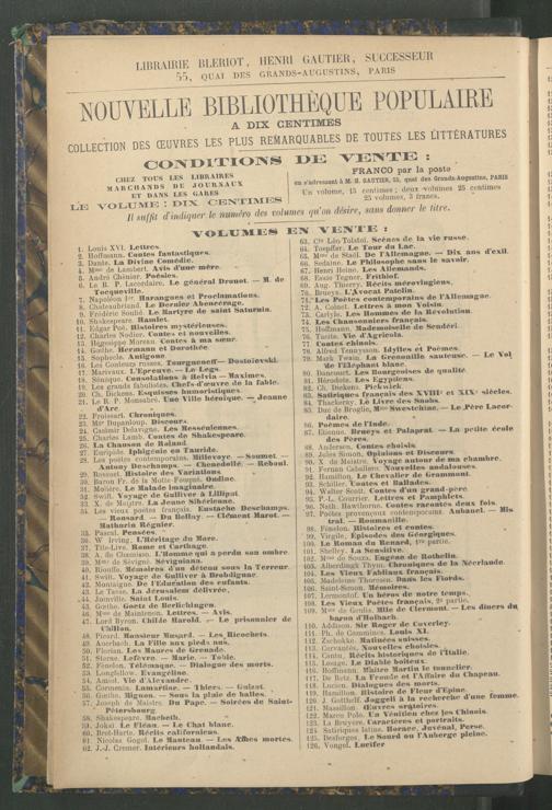 Un volume, 15 centimes ; deux volumes 25 centimes 23 volumes, 3 francs.