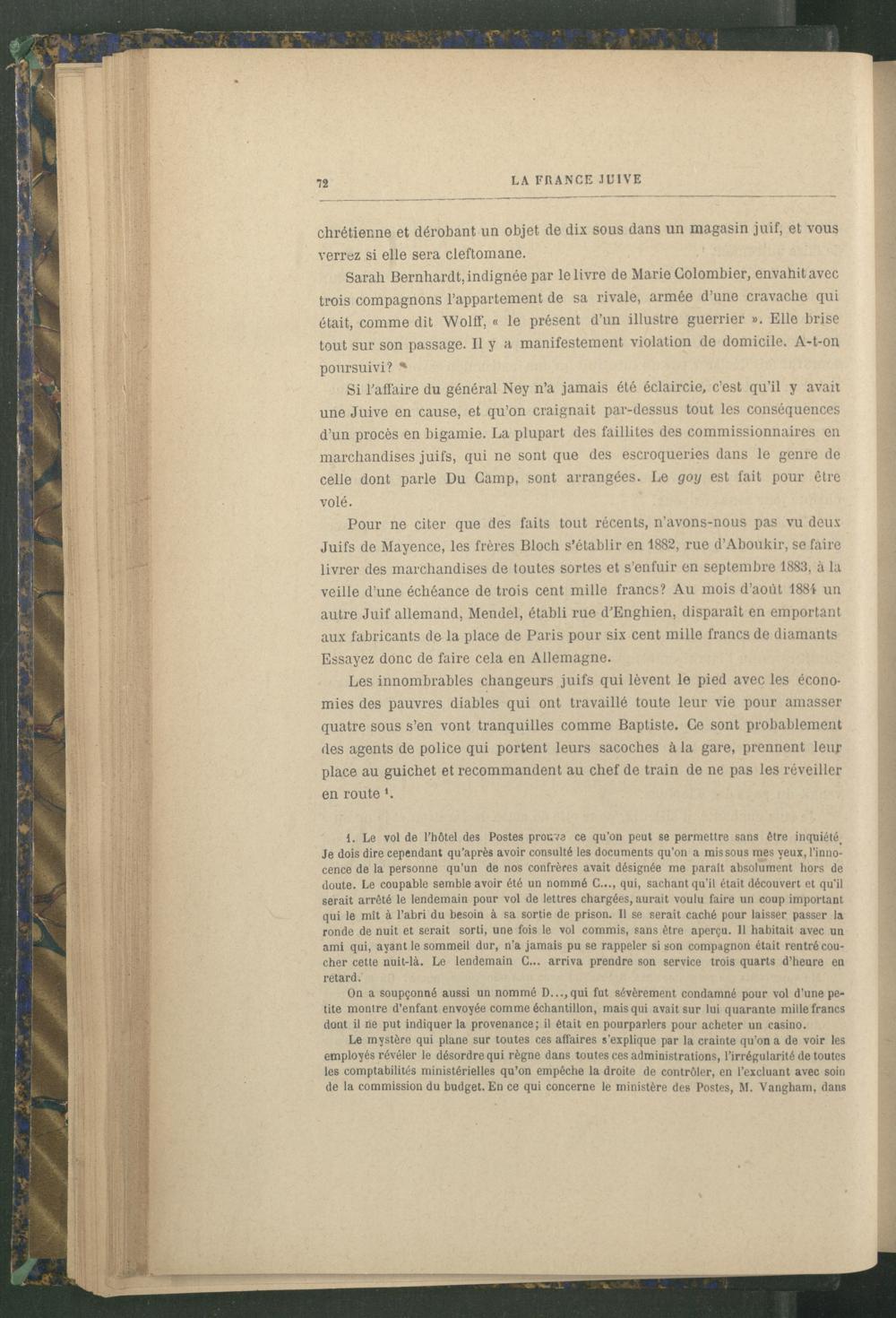 Si l'affaire du général Ney n’a jamais été éclaircie, c’est qu’il y avait une Juive en cause, et qu’on craignait par-dessus tout les conséquences d’un procès en bigamie. La plupart des faillites des commissionnaires en marchandises juifs, qui ne sont que des escroqueries dans le genre de celle dont parle Du Camp, sont arrangées. Le goij est fait pour être volé.