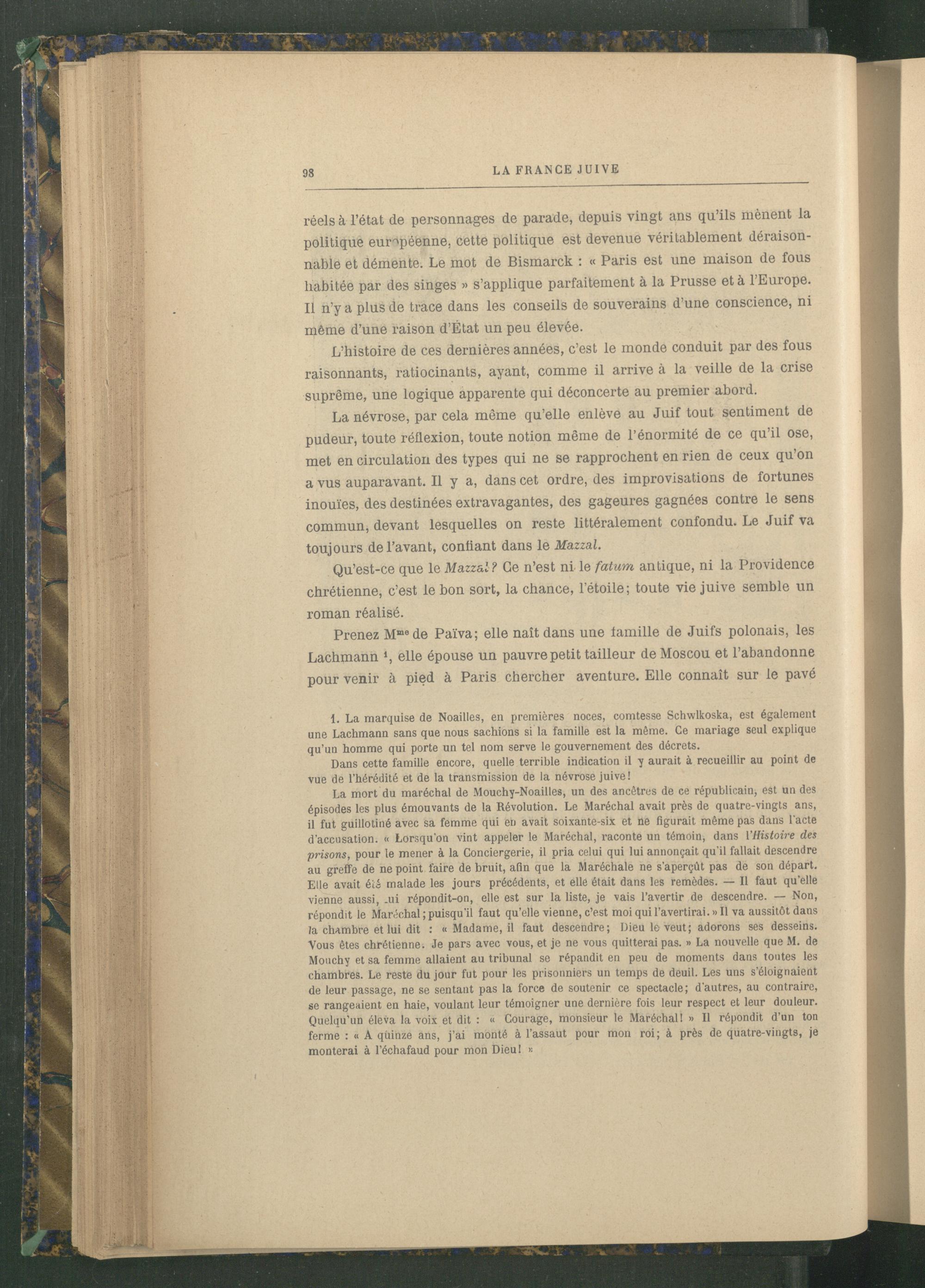 1. La marquise de Noailles, en premières noces, comtesse Schwlkoska, est également une Lachmann sans que nous sachions si la famille est la même. Ce mariage seul explique qu’un homme qui porte un tel nom serve le gouvernement des décrets.