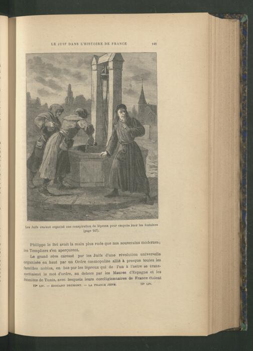Le grand rêve caressé par les Juifs d’une révolution universelle organisée en haut par un Ordre cosmopolite allié à presque toutes les familles nobles, en bas par les lépreux qui de l’un à l’autre se transmettaient le mot d’ordre, au dehors par les Maures d’Espagne et les Sémites de Tunis , avec lesquels leurs coreligionnaires de France étaient